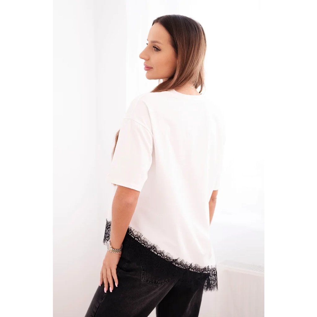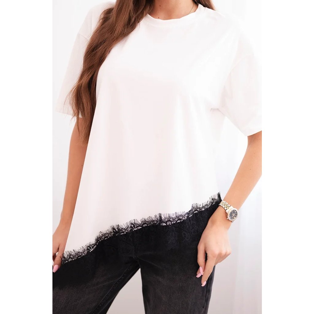 Dámska asymetrická bavlnená blúza s čipkou dole