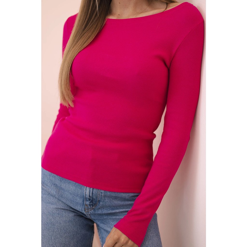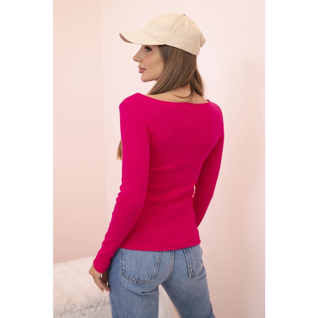 Dámska bavlnená blúza s dlhým rukávom a lodičkovým výstrihom fuchsiová