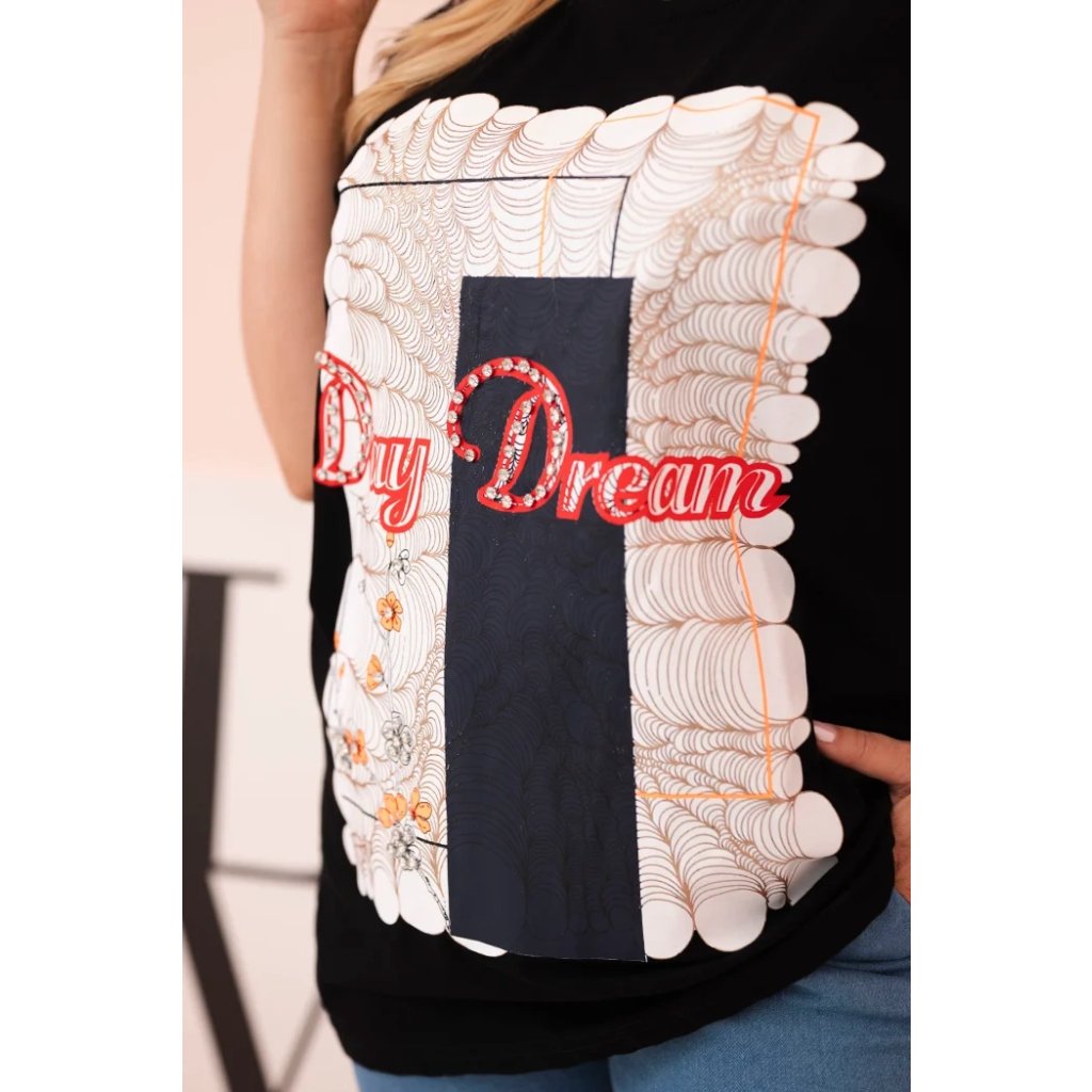 - Potlač s nápisom „Day Dream“ s módnym grafickým efektom