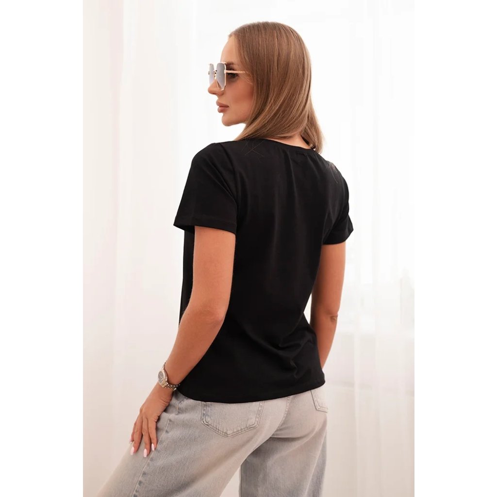 Dámska bavlnená blúzka s krátkym rukávom a nášivkou s perlami Five