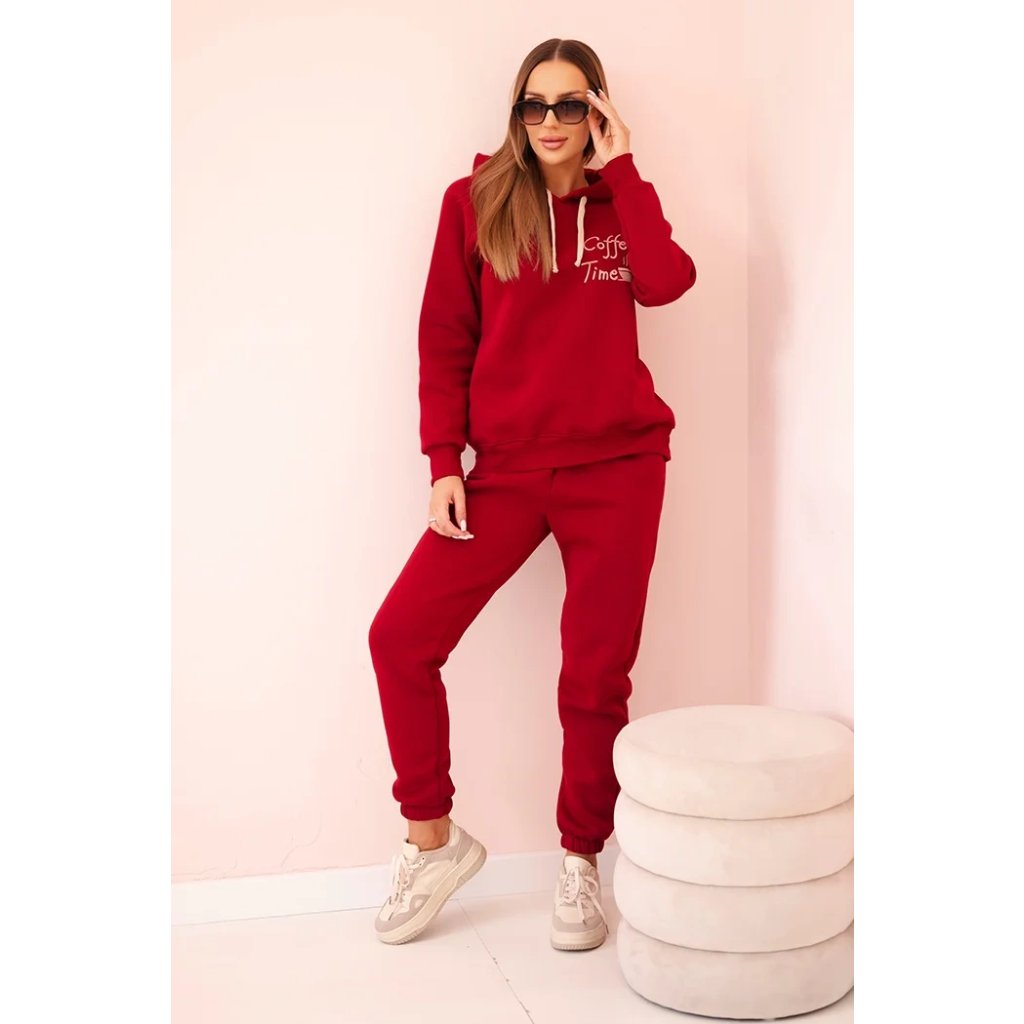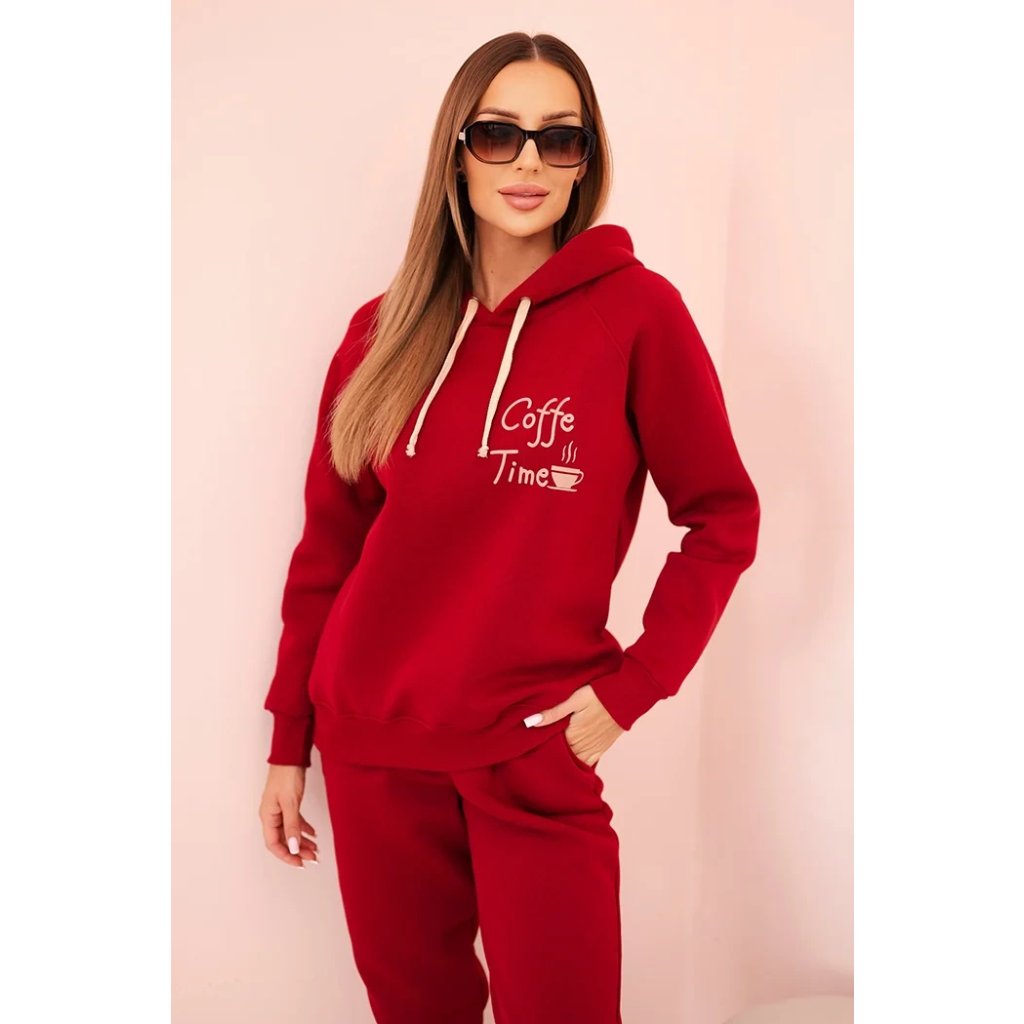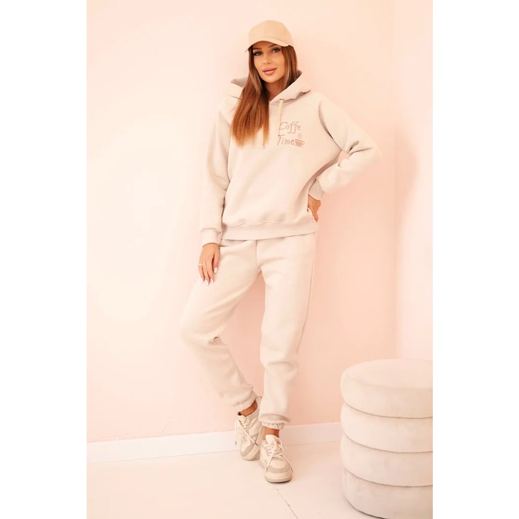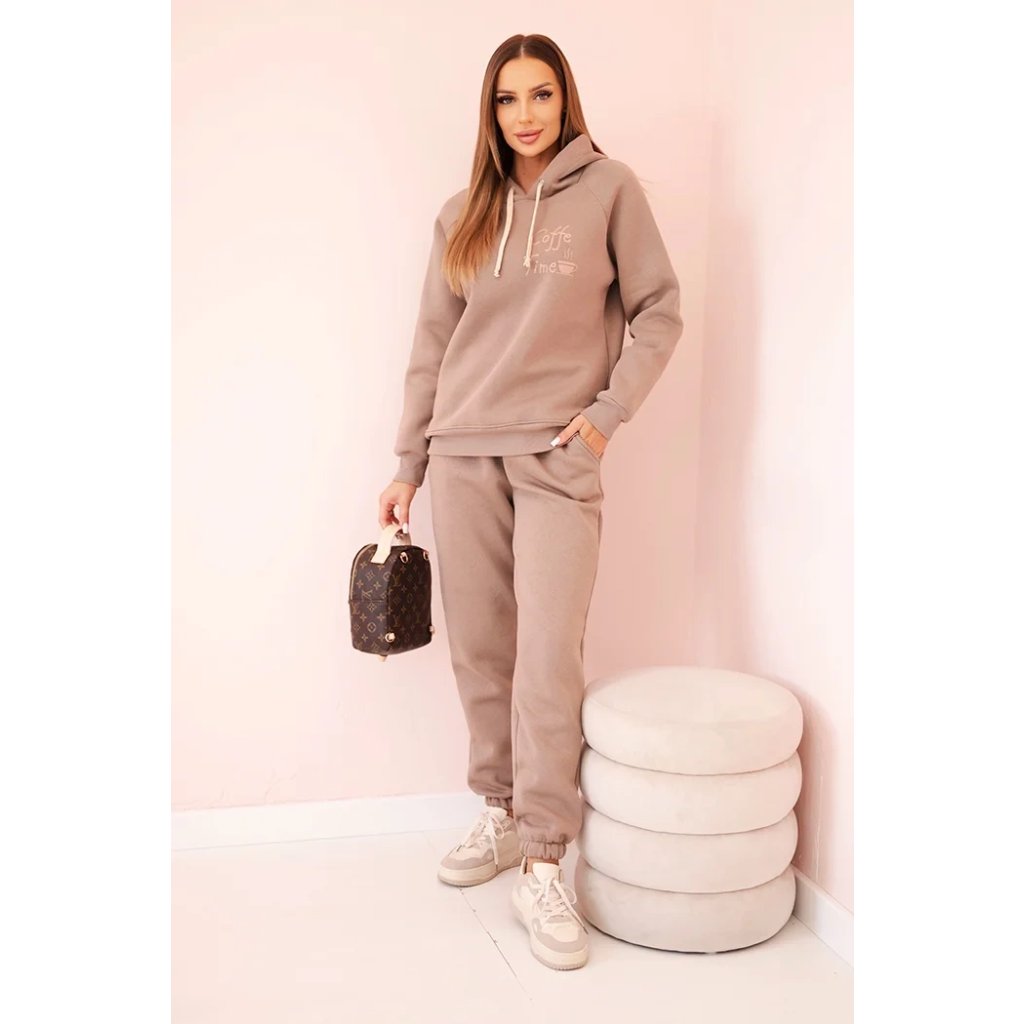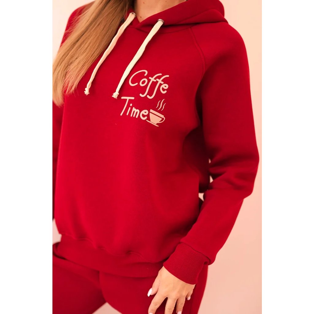 Tento dámsky zateplený dres je ideálnou voľbou na chladnejšie dni. Vyrobený z mäkkého, príjemného materiálu, zaisťuje maximálny komfort nosenia ako doma, tak na prechádzke alebo pri každodenných aktivitách. Mikina s kapucňou a potlačou „Coffe Time“ dodáva celku uvoľnený, pohodový charakter, zatiaľ čo nohavice s elastickým pásom skvele padnú na postavu.