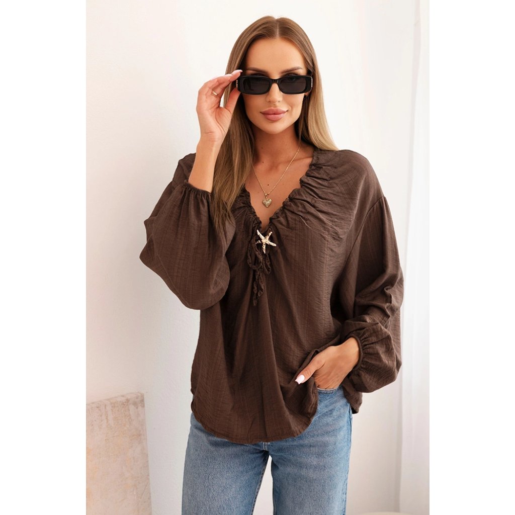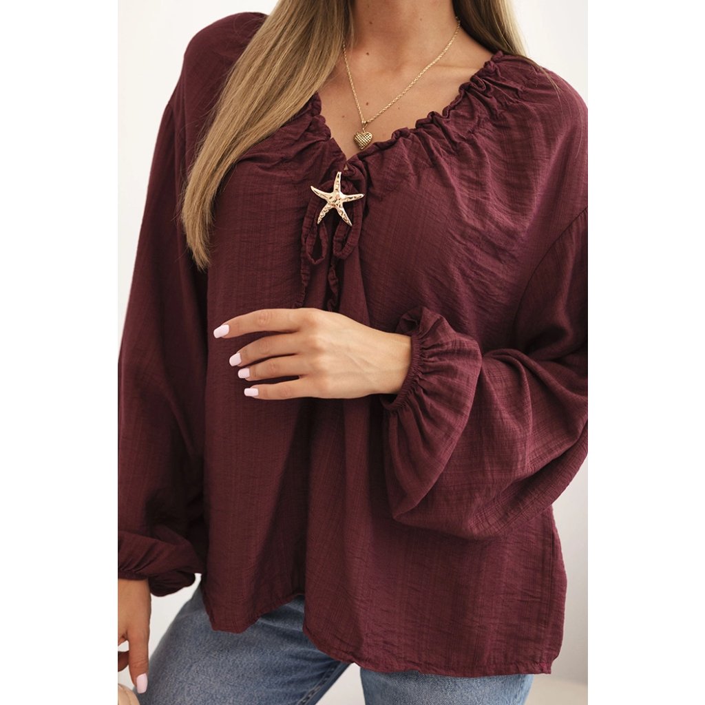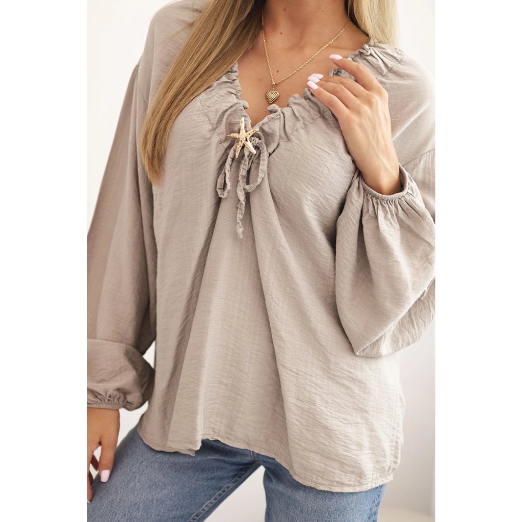 Dámska blúzka ART92320 s nariaseným výstrihom a ozdobou