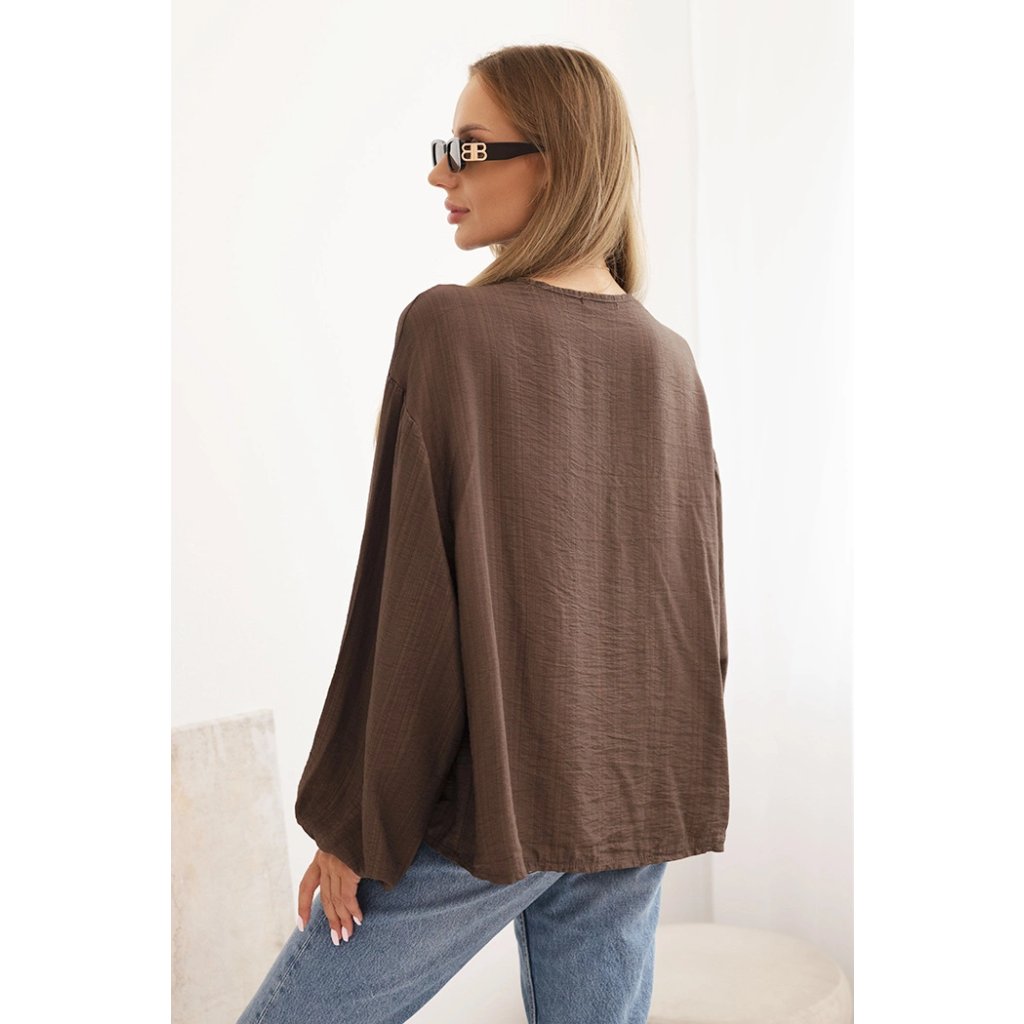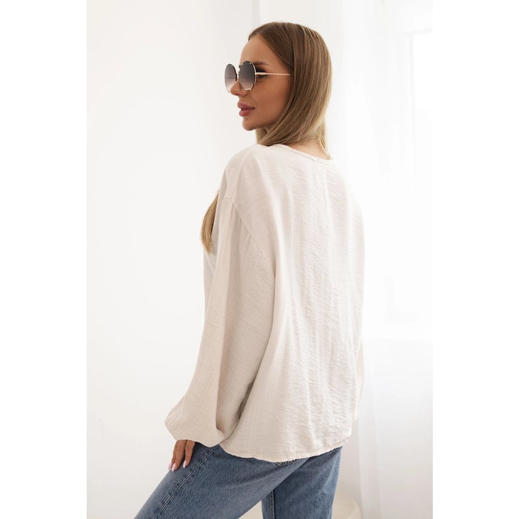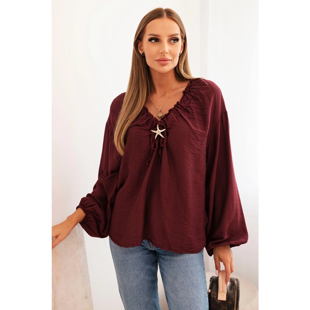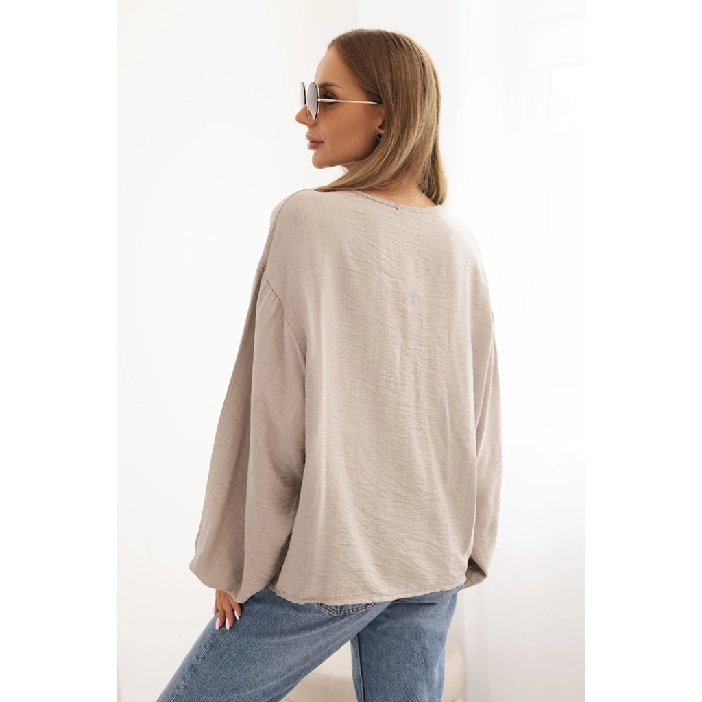 Dámska blúzka ART92320 s nariaseným výstrihom a ozdobou