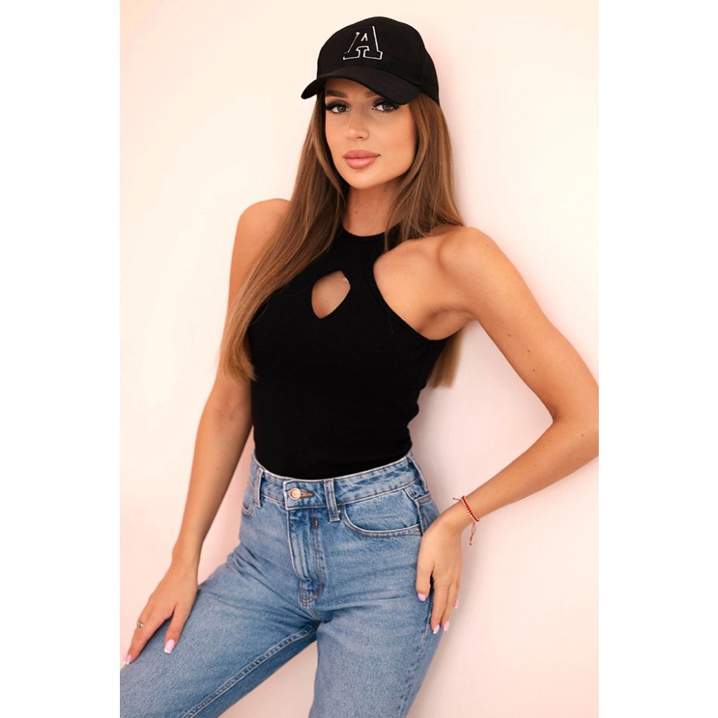 Dámska blúzka bez rukávov s výstrihom a ozdobnou sponou
