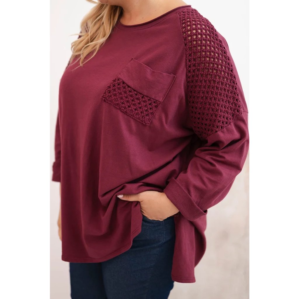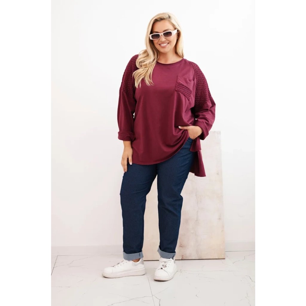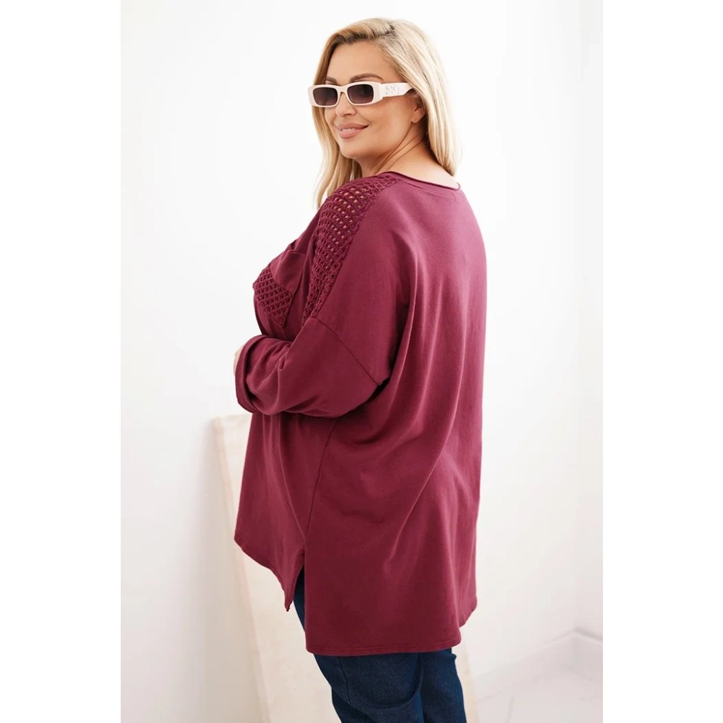 Dámska blúzka Plus Size bavlnená s potlačou bordová