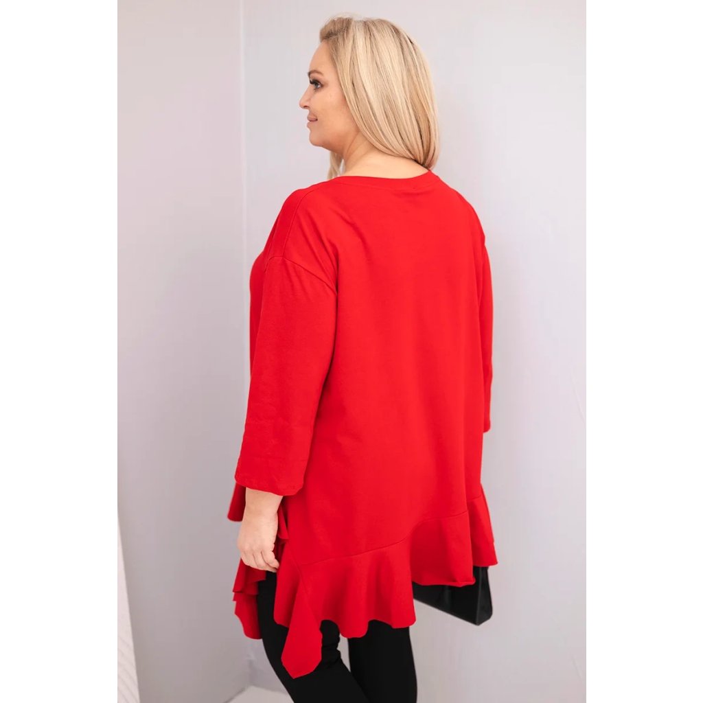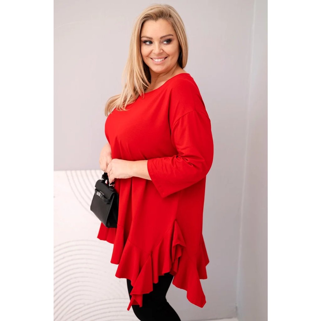 Dámska blúzka Plus Size s bavlnou, volánom a vyhrňovacími rukávmi červená