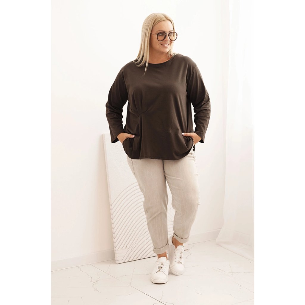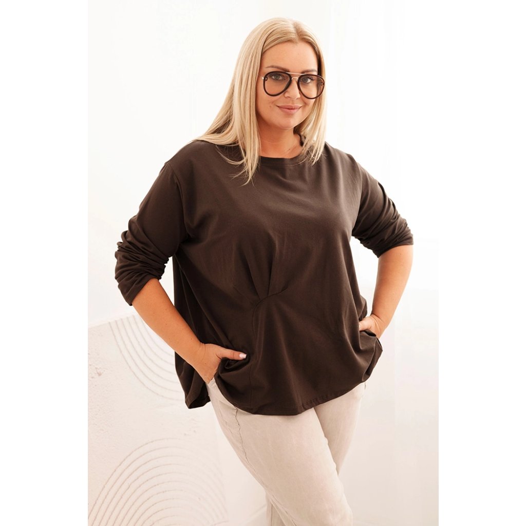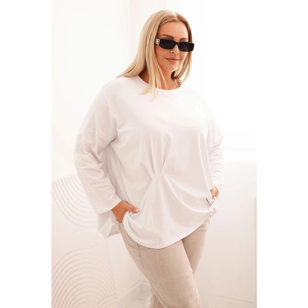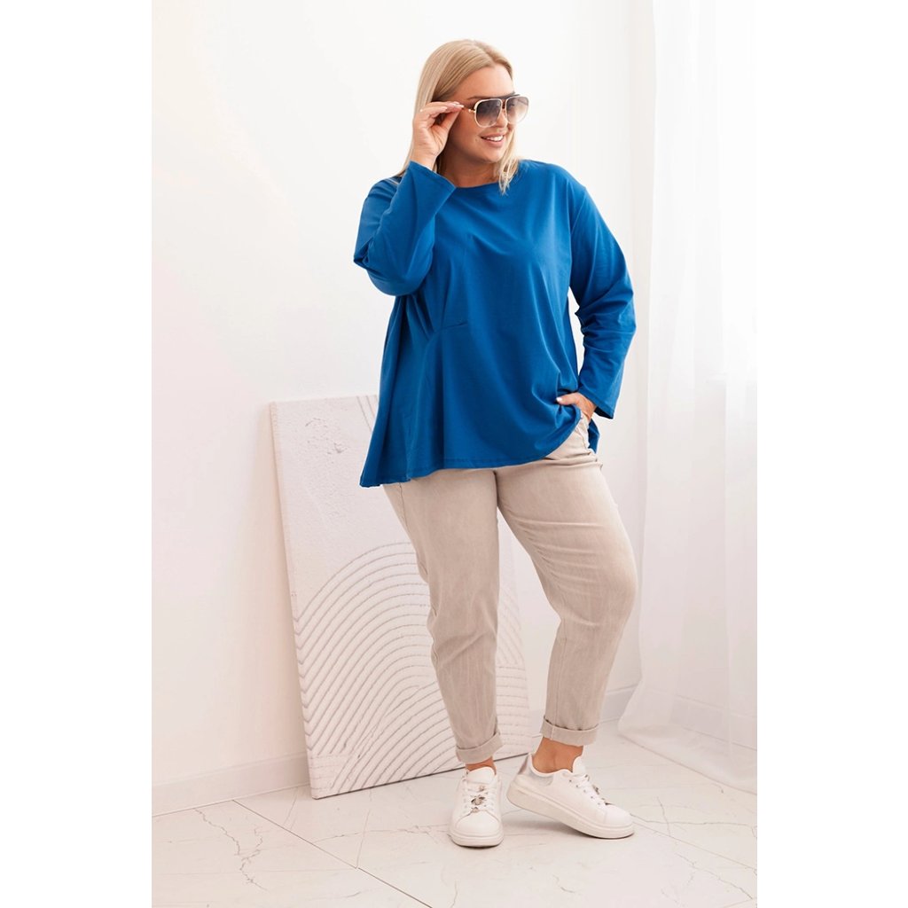 Táto dámska plus size košeľa s bavlnou je pohodlný a štýlový model navrhnutý pre ženy, ktoré si cenia komfort v každodenných štylizáciách. Vyrobená z vysoko kvalitnej bavlnenej pleteniny s prímesou elastanu, je mäkká, priedušná a príjemná na nosenie. Voľný strih s jemným nariasením vpredu decentne modeluje postavu a dodáva celku ľahkosť.