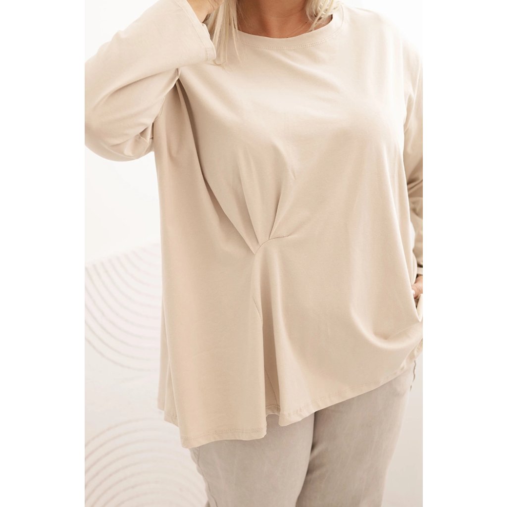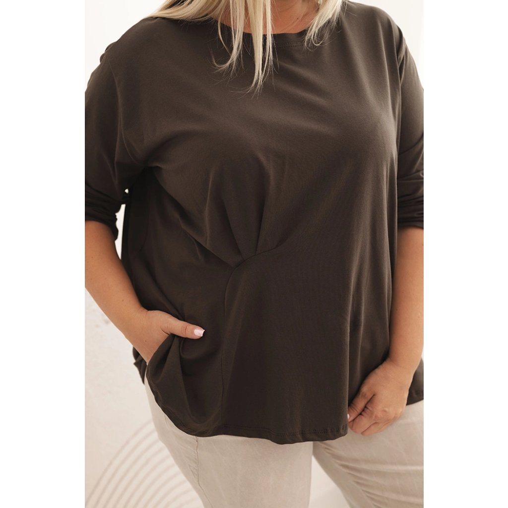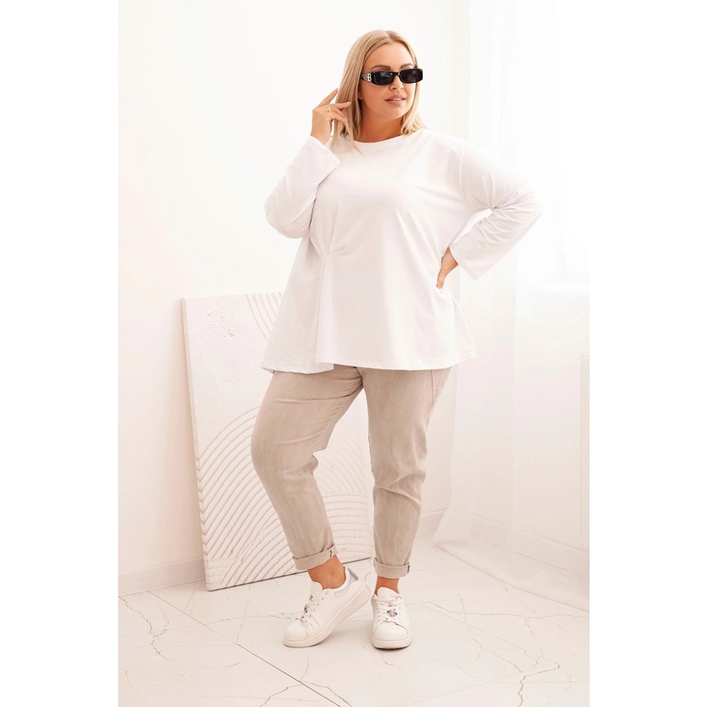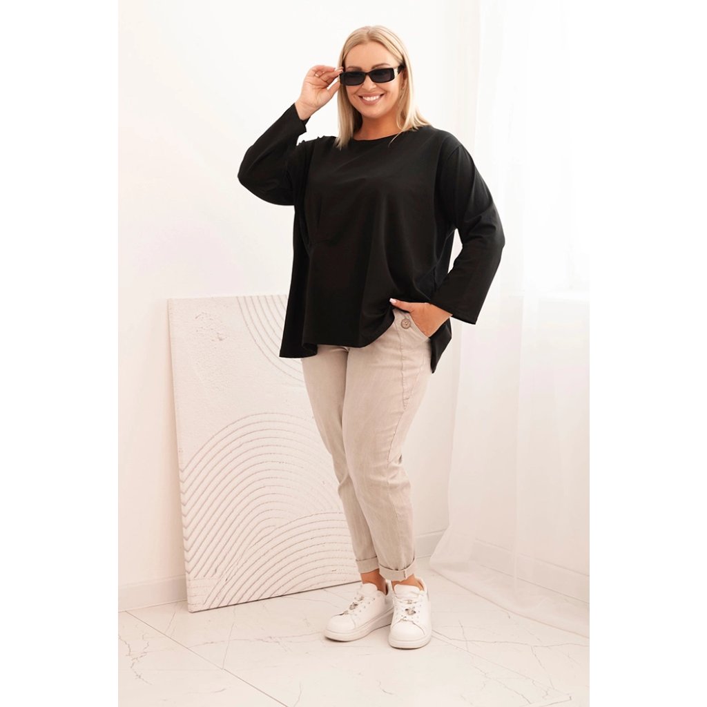 Táto dámska plus size košeľa s bavlnou je pohodlný a štýlový model navrhnutý pre ženy, ktoré si cenia komfort v každodenných štylizáciách. Vyrobená z vysoko kvalitnej bavlnenej pleteniny s prímesou elastanu, je mäkká, priedušná a príjemná na nosenie. Voľný strih s jemným nariasením vpredu decentne modeluje postavu a dodáva celku ľahkosť.