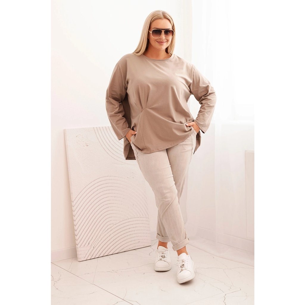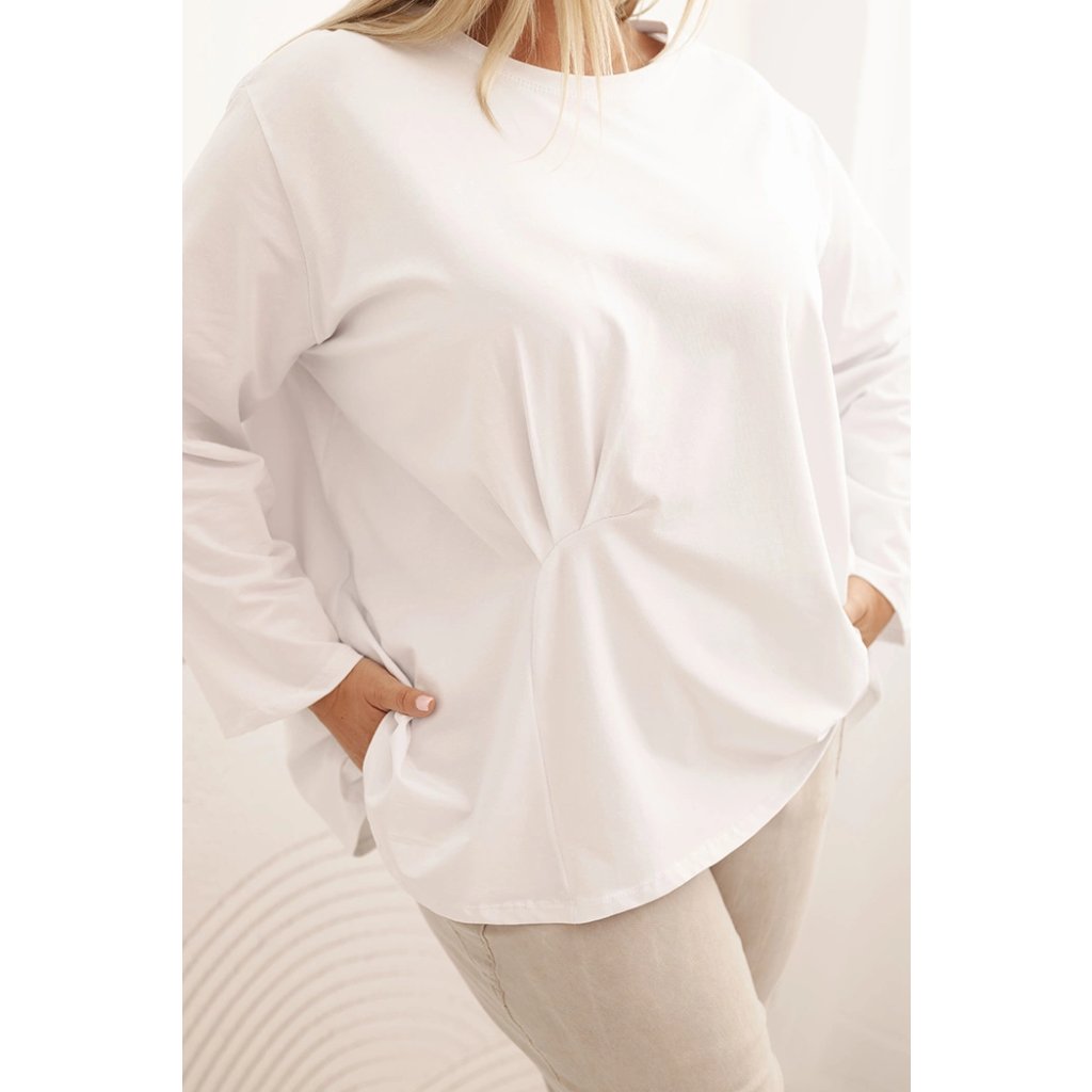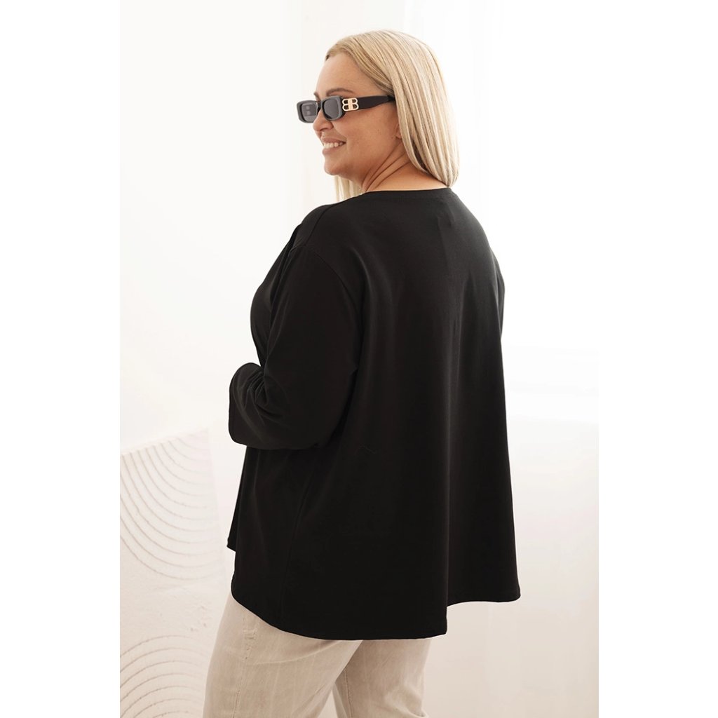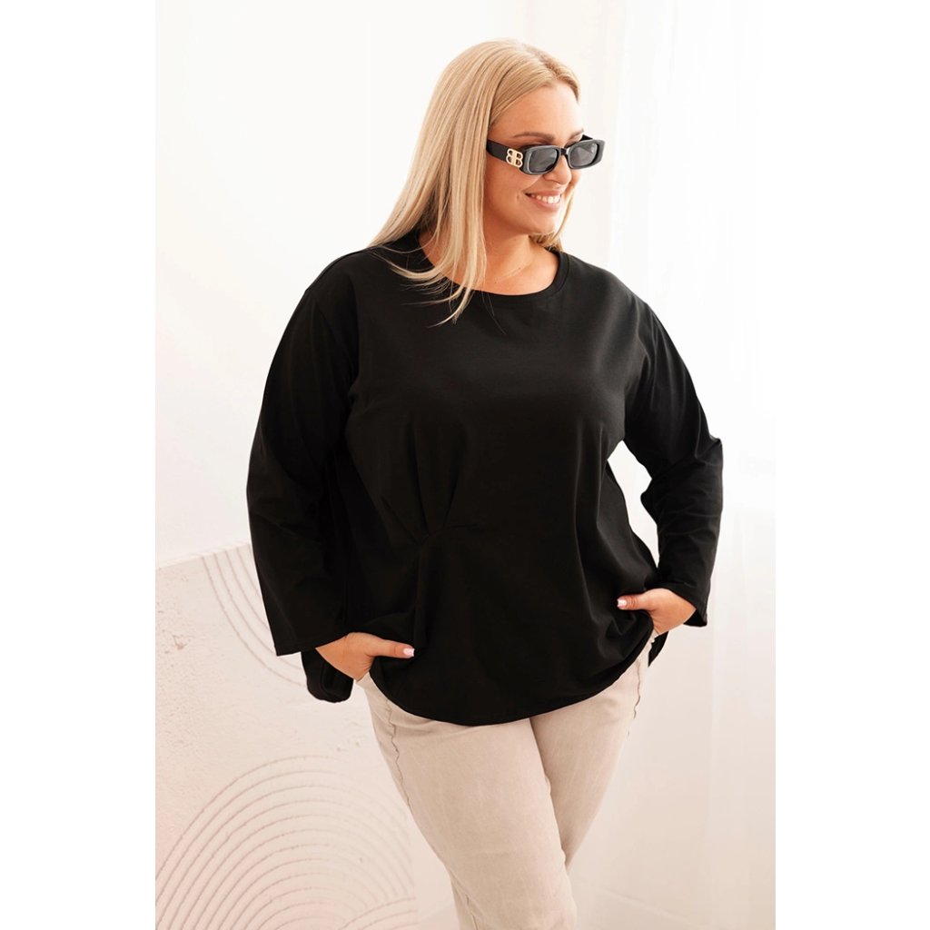Táto dámska plus size košeľa s bavlnou je pohodlný a štýlový model navrhnutý pre ženy, ktoré si cenia komfort v každodenných štylizáciách. Vyrobená z vysoko kvalitnej bavlnenej pleteniny s prímesou elastanu, je mäkká, priedušná a príjemná na nosenie. Voľný strih s jemným nariasením vpredu decentne modeluje postavu a dodáva celku ľahkosť.