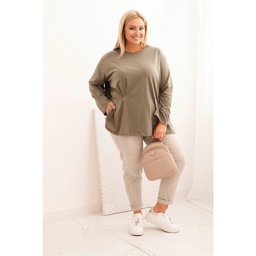 Dámska blúzka Plus Size s bavlnou, vreckom a vyhrnutým rukávom kiwi