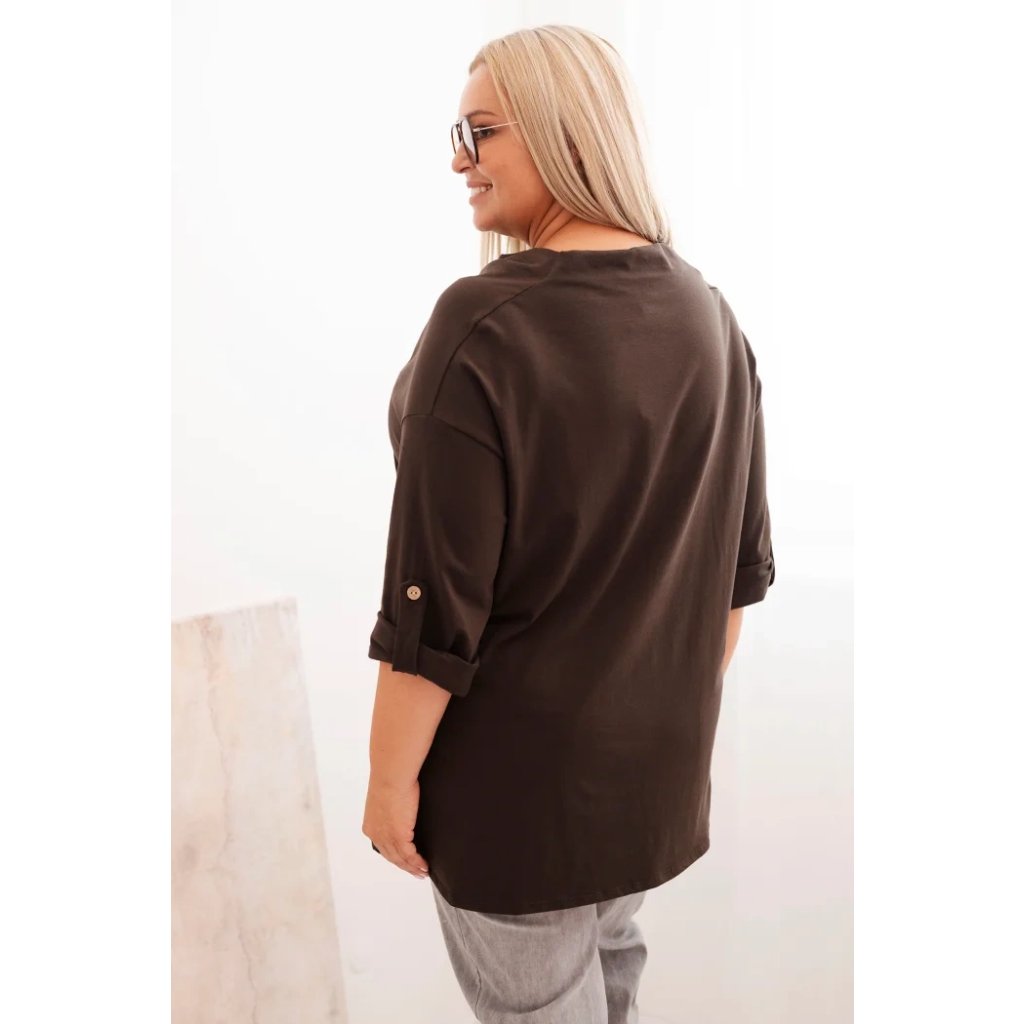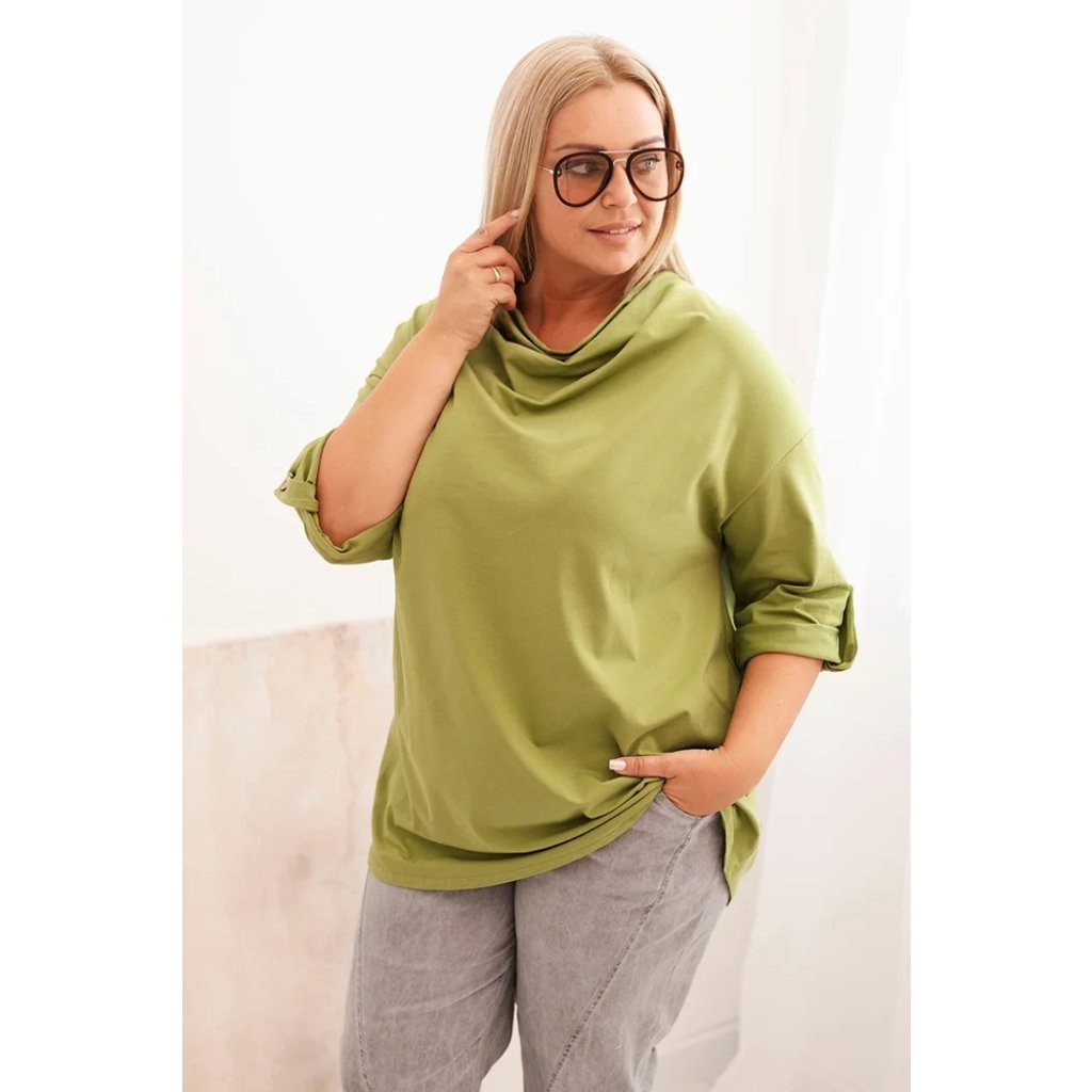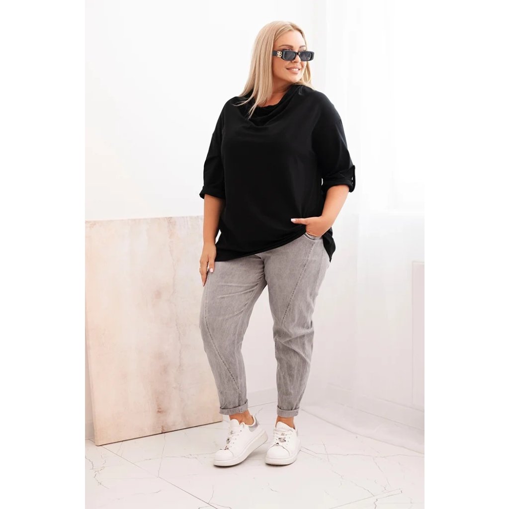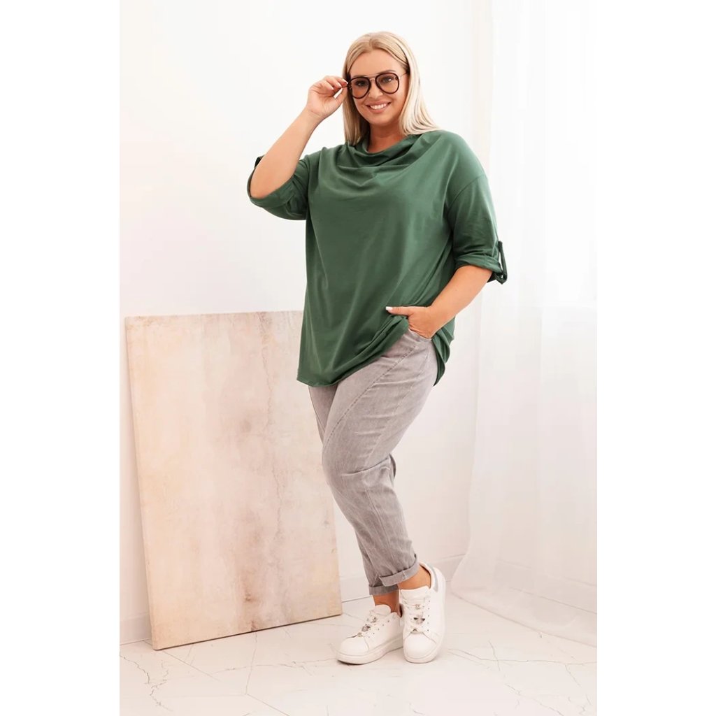 Dámska blúzka Plus Size s bavlnou voľného strihu s vodným výstrihom