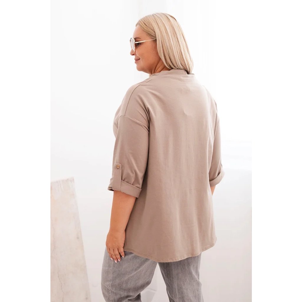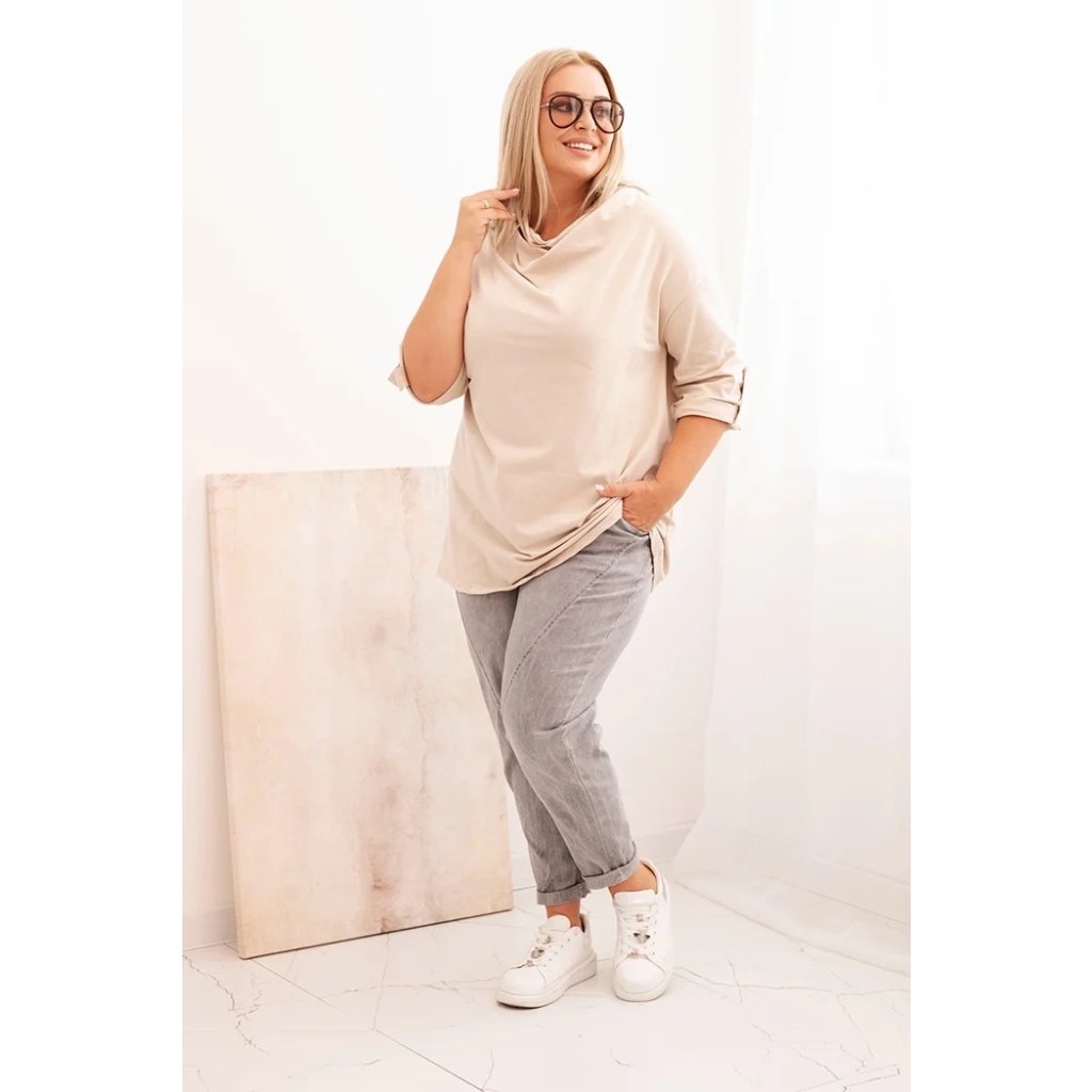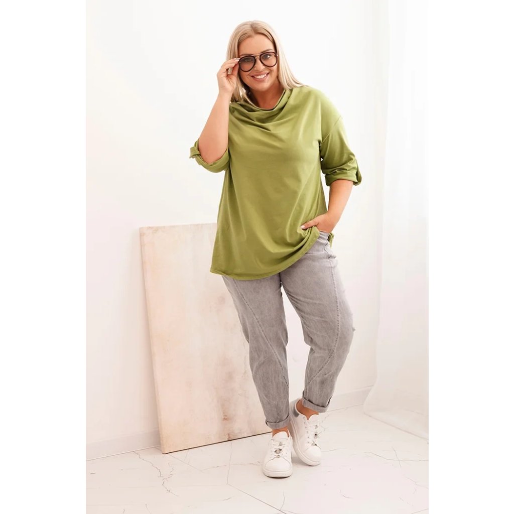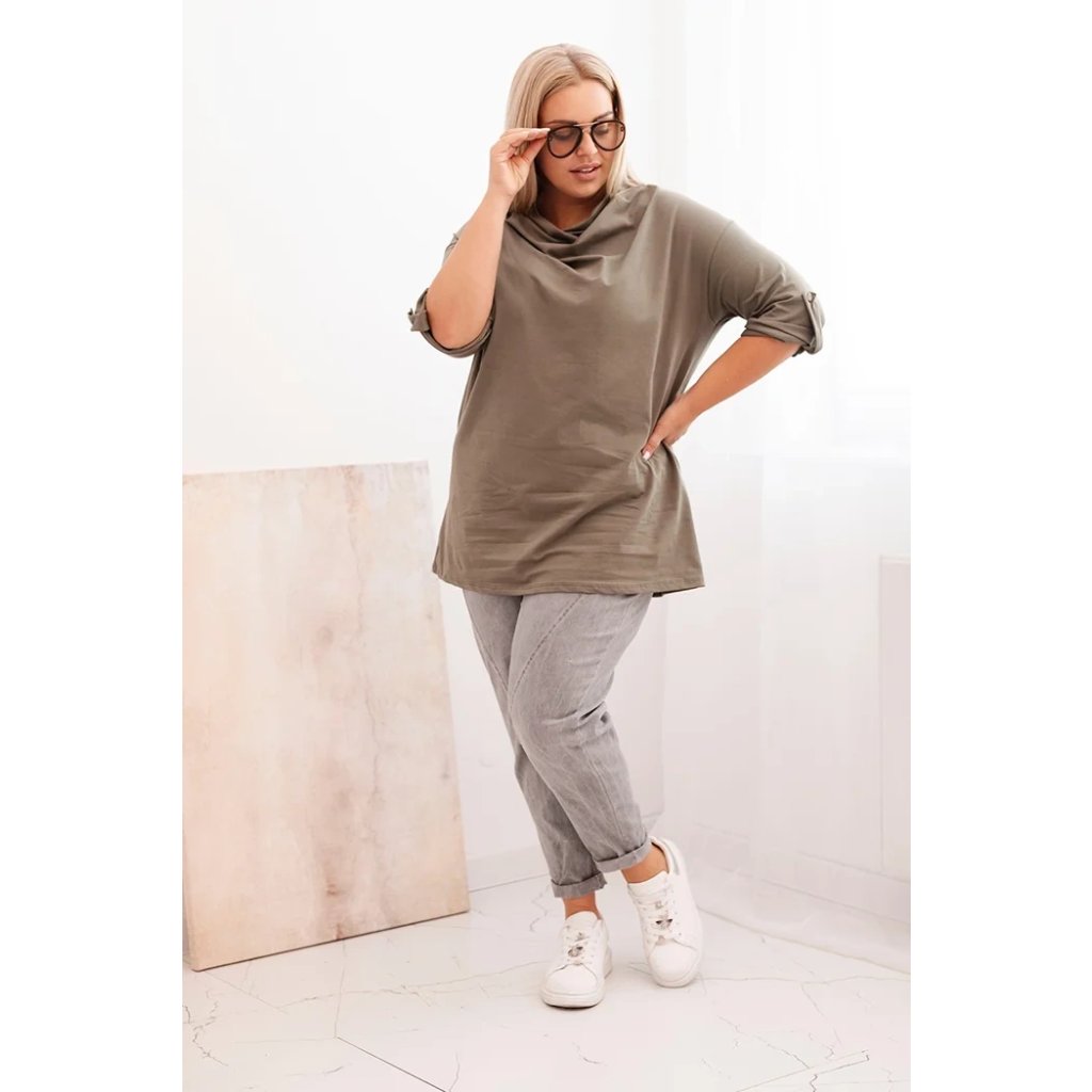 Dámska blúzka Plus Size s bavlnou voľného strihu s vodným výstrihom