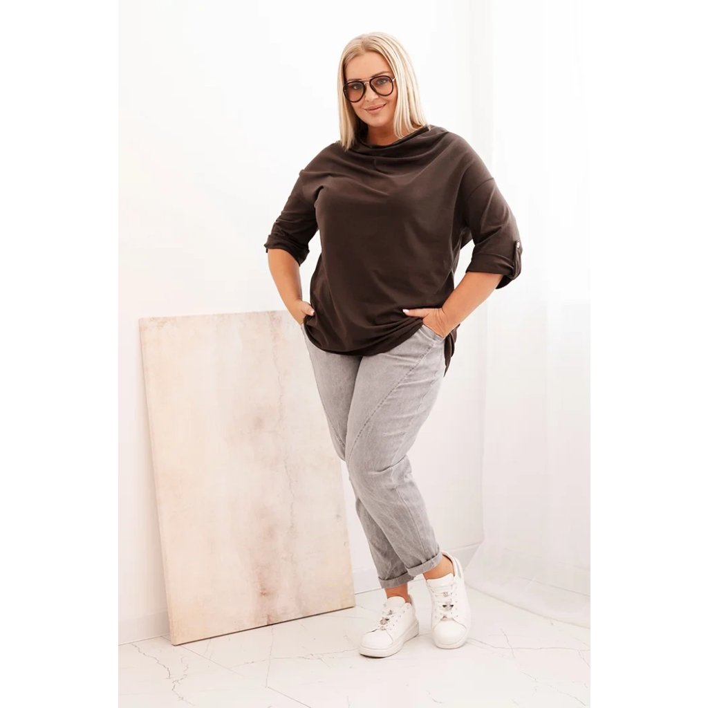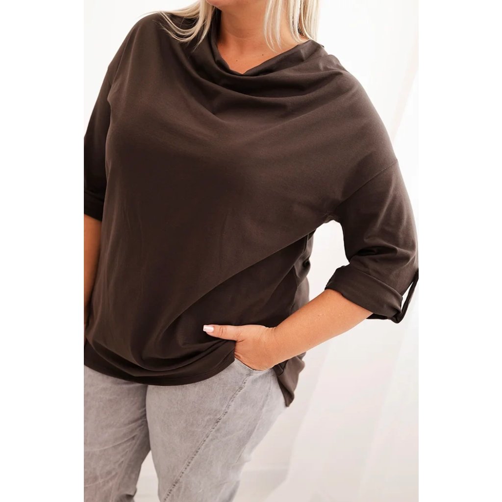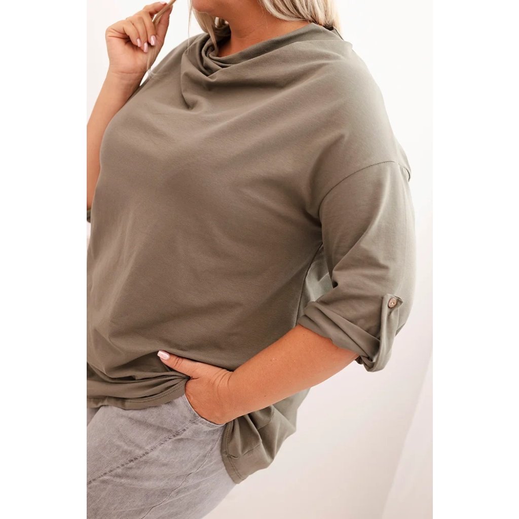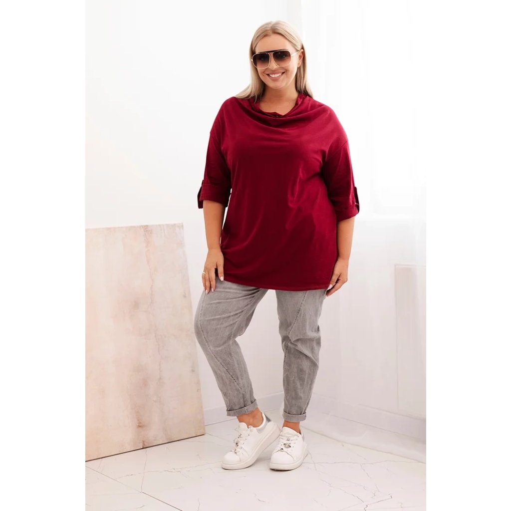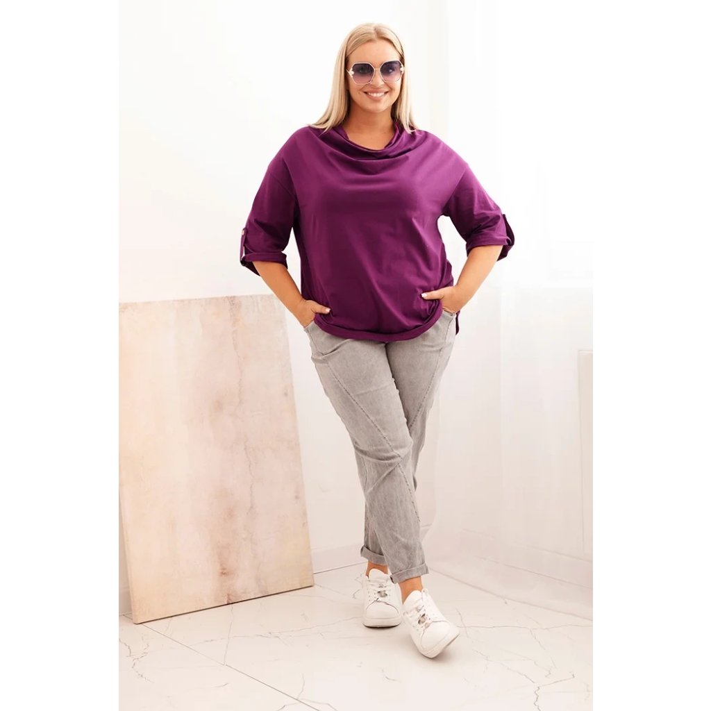 Štýlová a pohodlná dámska blúza plus size s bavlnou s efektným vodným výstrihom je vynikajúcou voľbou pre každodenné štylizácie aj pre elegantnejšie outfity. Mäkká bavlnená pletenina s prídavkom elastanu sa dokonale prispôsobuje postave a neobmedzuje pohyby. Voľný strih skvele zakrýva nedokonalosti a vodný výstrih jemne podčiarkuje ženský charakter štylizácie.