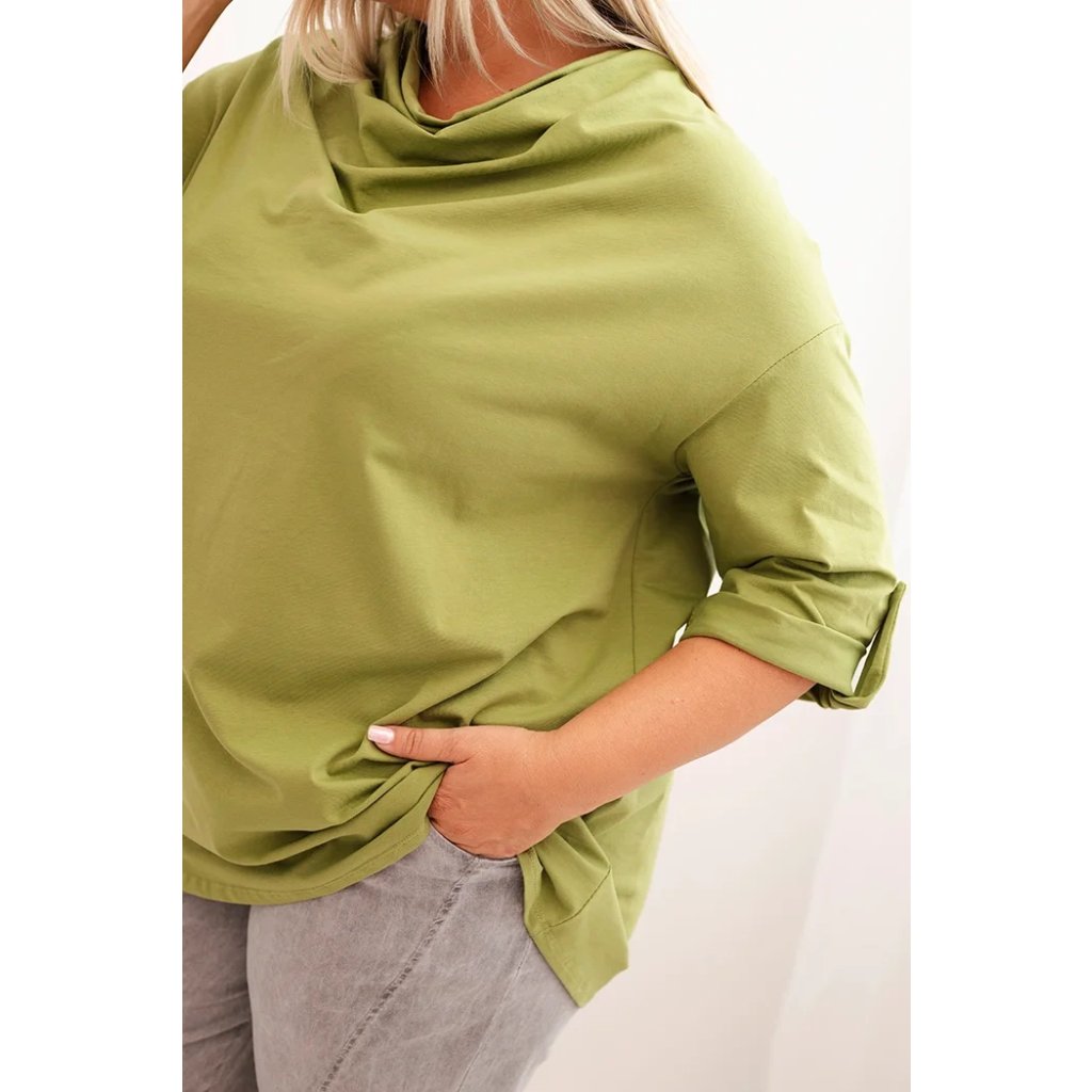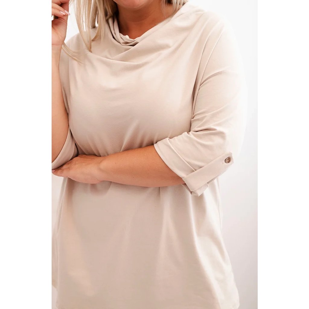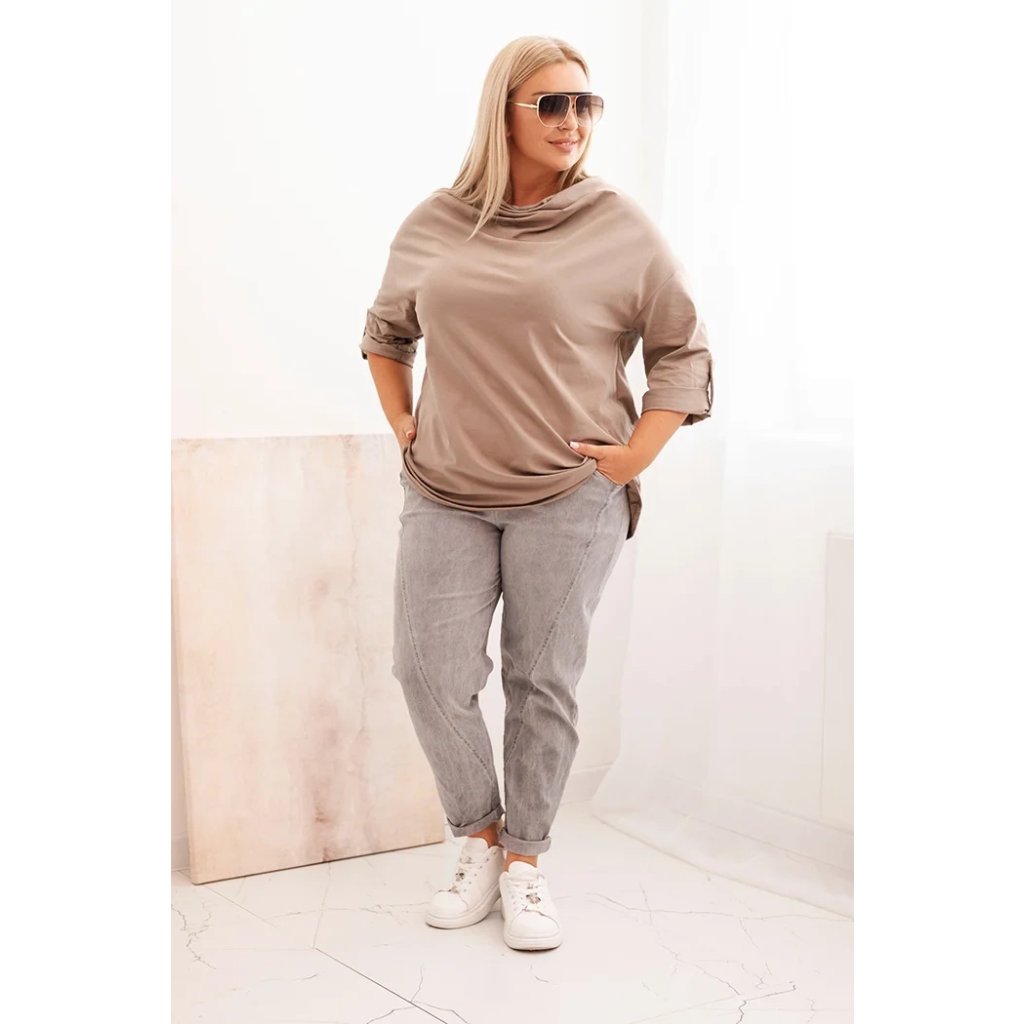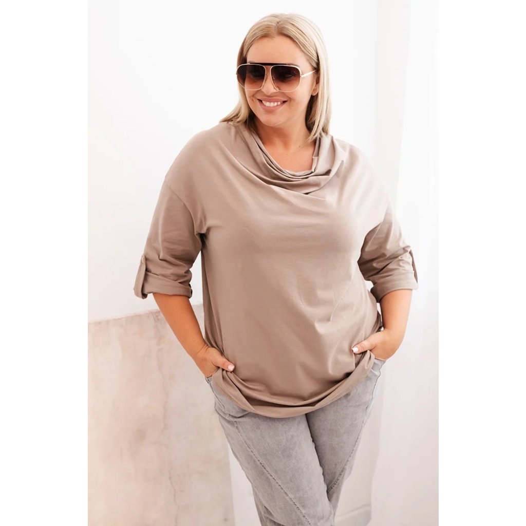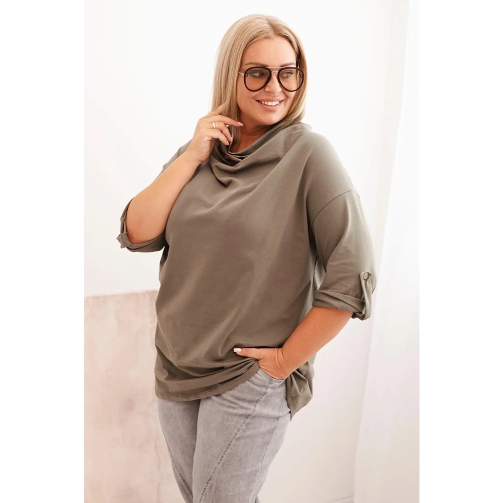 Štýlová a pohodlná dámska blúza plus size s bavlnou s efektným vodným výstrihom je vynikajúcou voľbou pre každodenné štylizácie aj pre elegantnejšie outfity. Mäkká bavlnená pletenina s prídavkom elastanu sa dokonale prispôsobuje postave a neobmedzuje pohyby. Voľný strih skvele zakrýva nedokonalosti a vodný výstrih jemne podčiarkuje ženský charakter štylizácie.