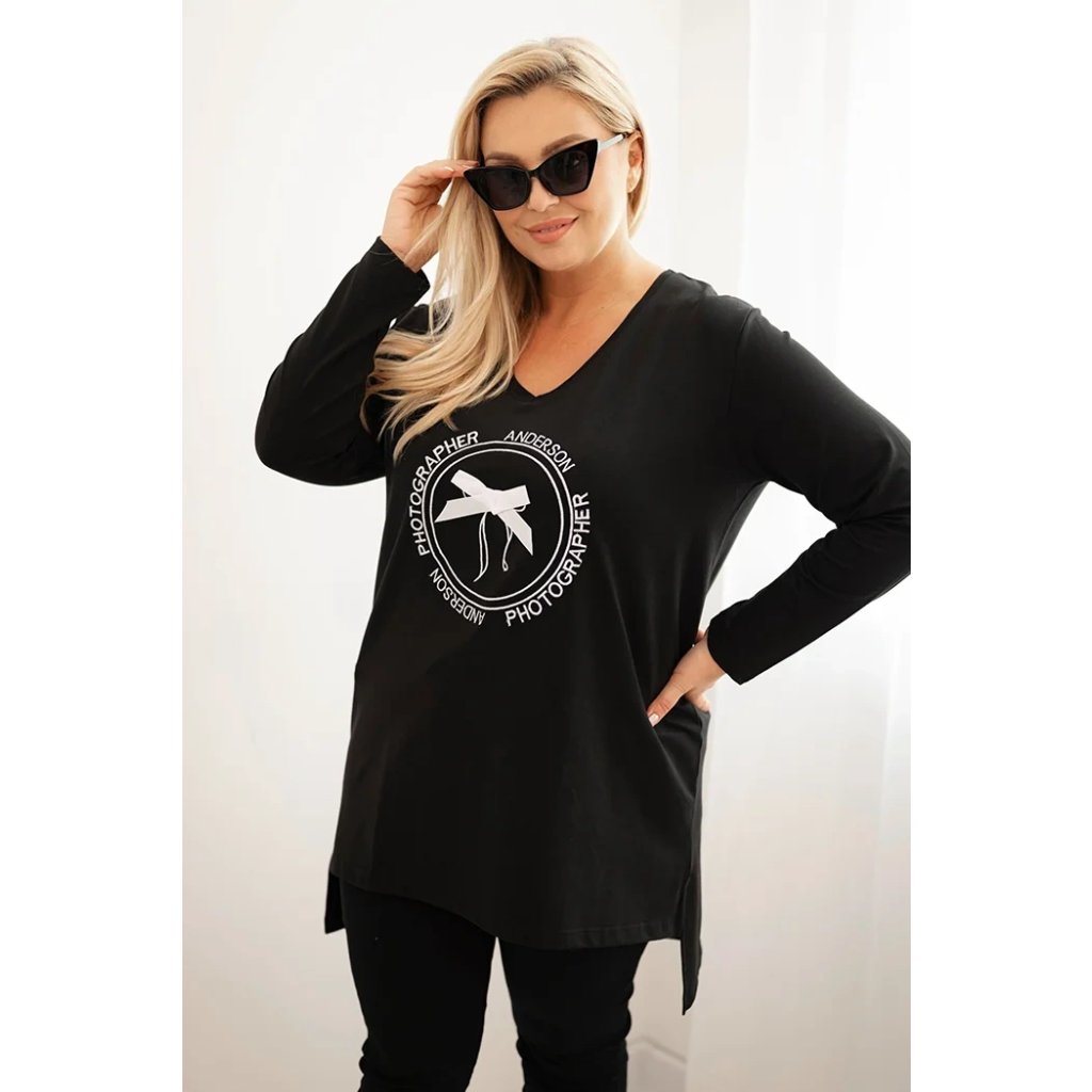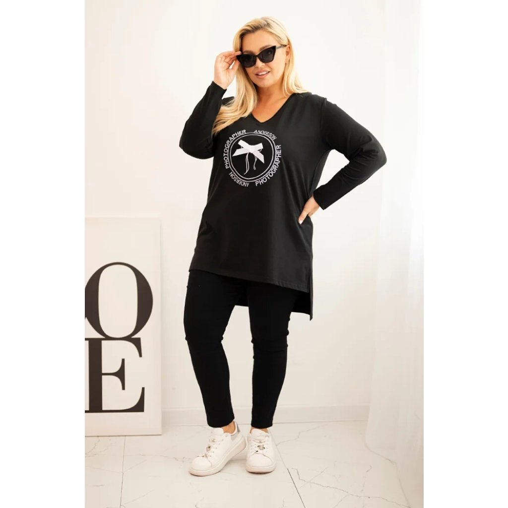 Dámska blúzka s dlhším zadným dielom a potlačou