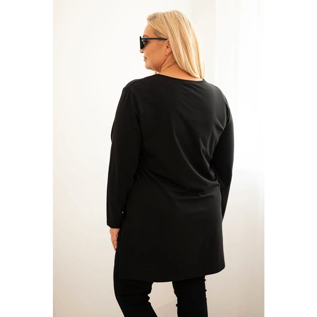 Táto dámska blúza s dlhším zadným dielom je kombináciou pohodlia a módneho dizajnu, ideálna pre každé ročné obdobie. Vyrobená z mäkkého materiálu, skvele sa prispôsobuje postave a vďaka dodatočnému roztiahnutiu sa prispôsobí rôznym tvarom. Dlhý rukáv a klasický výstrih v tvare písmena V robia blúzu pohodlnou aj štýlovou.