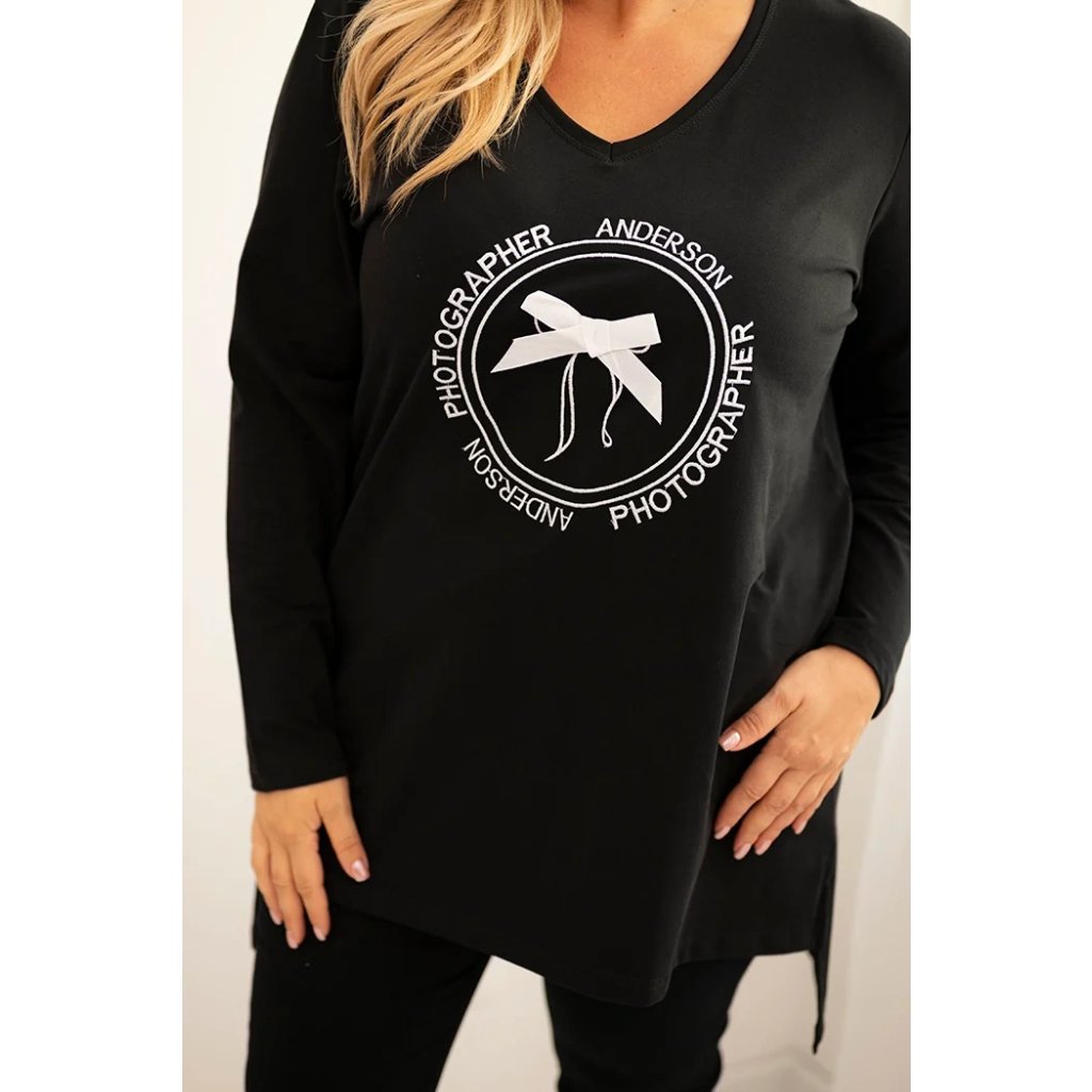 Prednú časť zdobí módna potlač v streetwear štýle, ktorý dodáva celku moderný charakter. Zadný diel je mierne predĺžený, čo opticky zoštíhľuje postavu a zaisťuje dodatočný komfort nosenia. Skvelý návrh pre každodenný styling – ako k džínsom, tak k legínam.