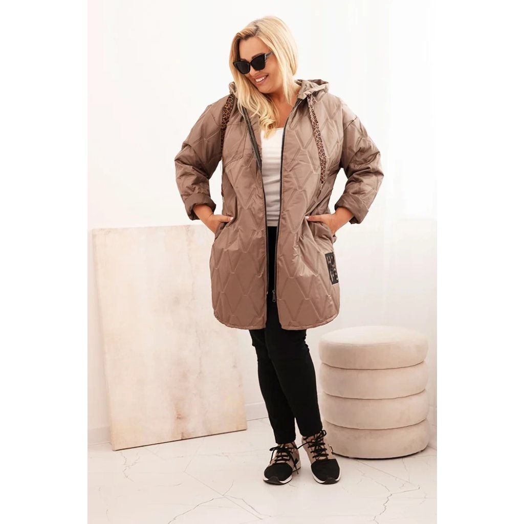 Štýlová dámska prešívaná bunda vo veľkosti plus size je vynikajúcou voľbou pre ženy nosiace väčšie veľkosti – od XL do 4XL. Jej voľný, oversized strih zaisťuje maximálny komfort nosenia a skvele sa prispôsobuje postave, neobmedzuje pohyb. Model sa vyznačuje geometrickým prešívaním, ktoré opticky zoštíhľuje siluetu, a módnou kapucňou so sťahovacou šnúrkou v leopardom vzore. Zips a praktické vrecko na prsiach podčiarkujú moderný a funkčný charakter bundy.
