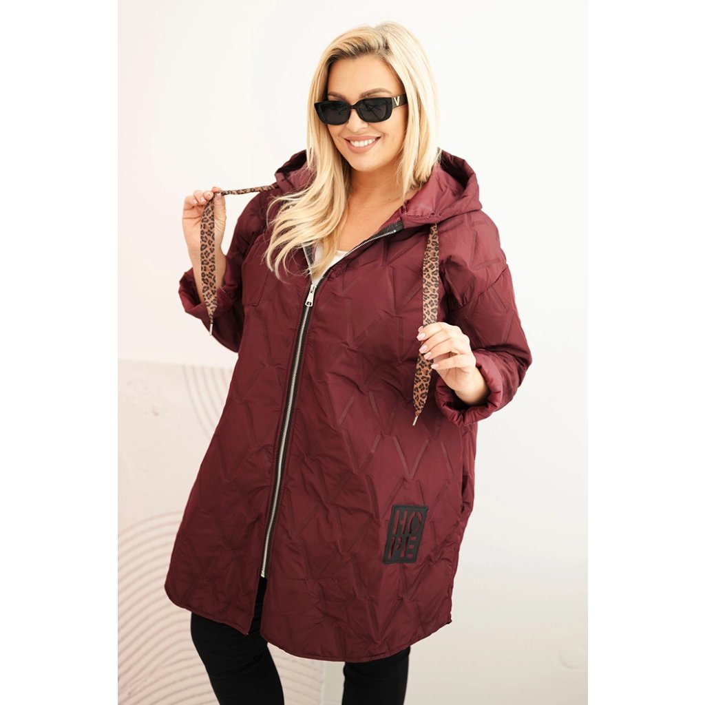 Dámska bunda 5614 Plus Size prešívaná s kapucňou a nápisom HOPE