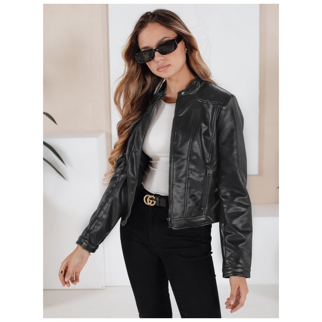 Táto štýlová dámska prechodná bunda vyrobená z vysoko kvalitnej ekokože je voľbou pre milovníčky nadčasovej klasiky. Priliehavý strih zdôrazňuje siluetu a stojačik s patentným zapínaním dodáva elegantný nádych. Má praktické vrecká na zips a podšívku pre pohodlie v chladnejších dňoch.