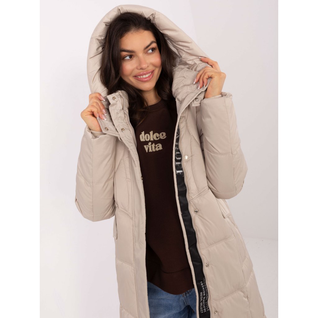 Dámska dlhá bunda s kapucňouPrevažujúci vzor: jednofarebný