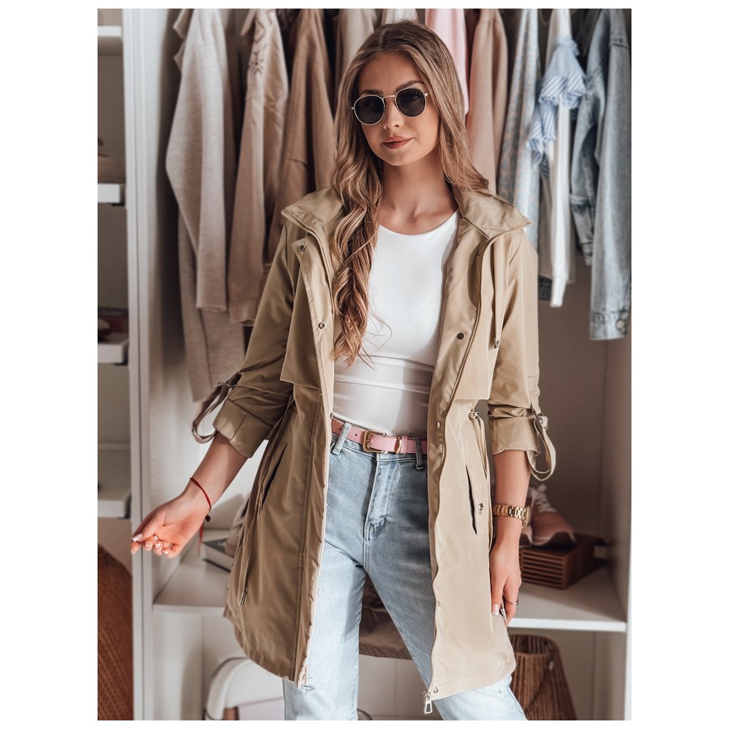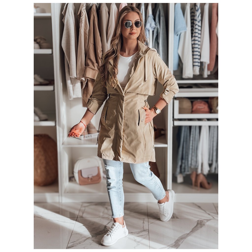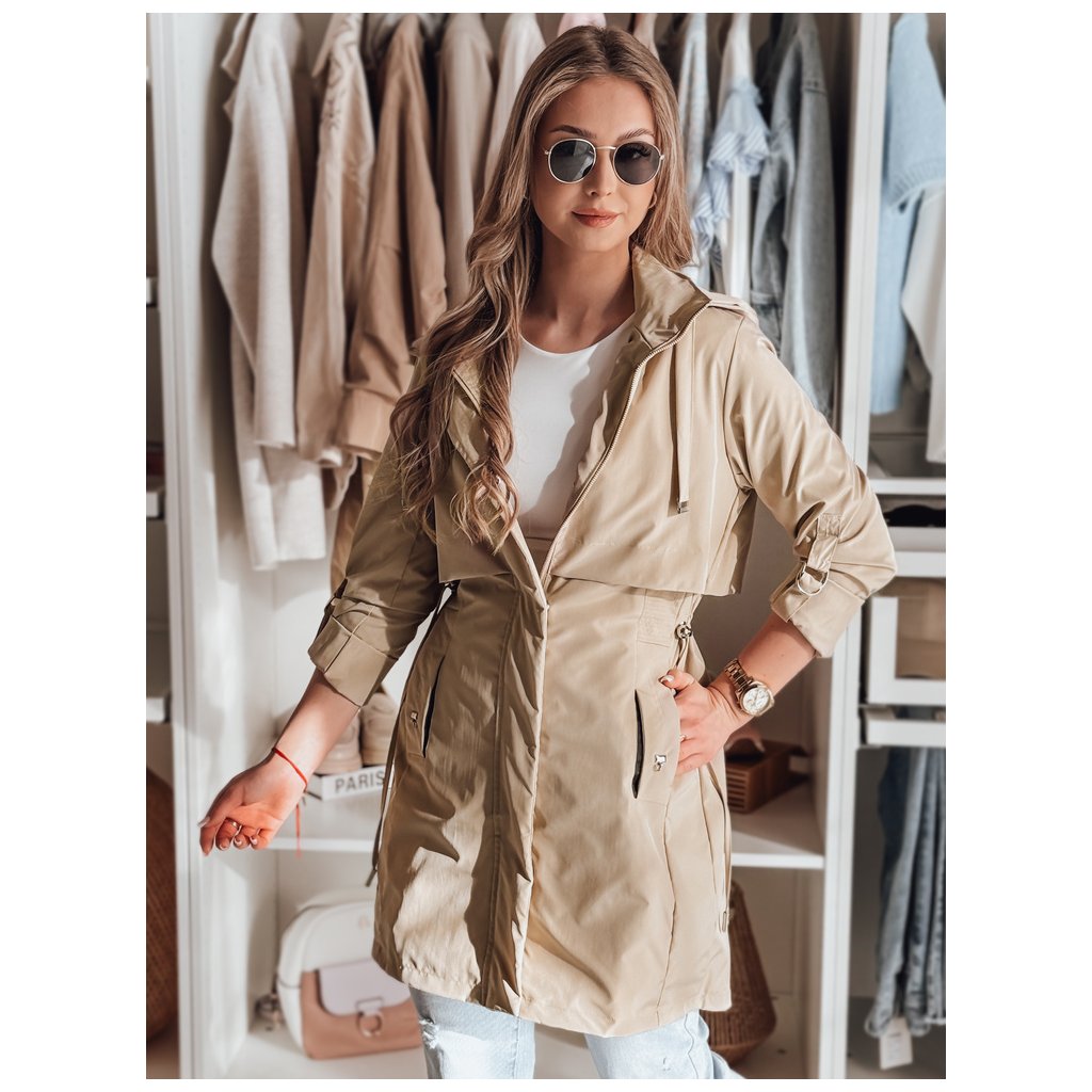 Táto dámska parka kombinuje klasický štýl so štýlom. Pohodlná odnímateľná kapucňa a nastaviteľný pás a manžety umožňujú prispôsobenie strihu. Zapína sa na zips a cvoky a má ozdobné vrecká – dve vonkajšie a jedno vnútorné. Ideálna pre jarné outfity, kombinuje pohodlie a eleganciu.