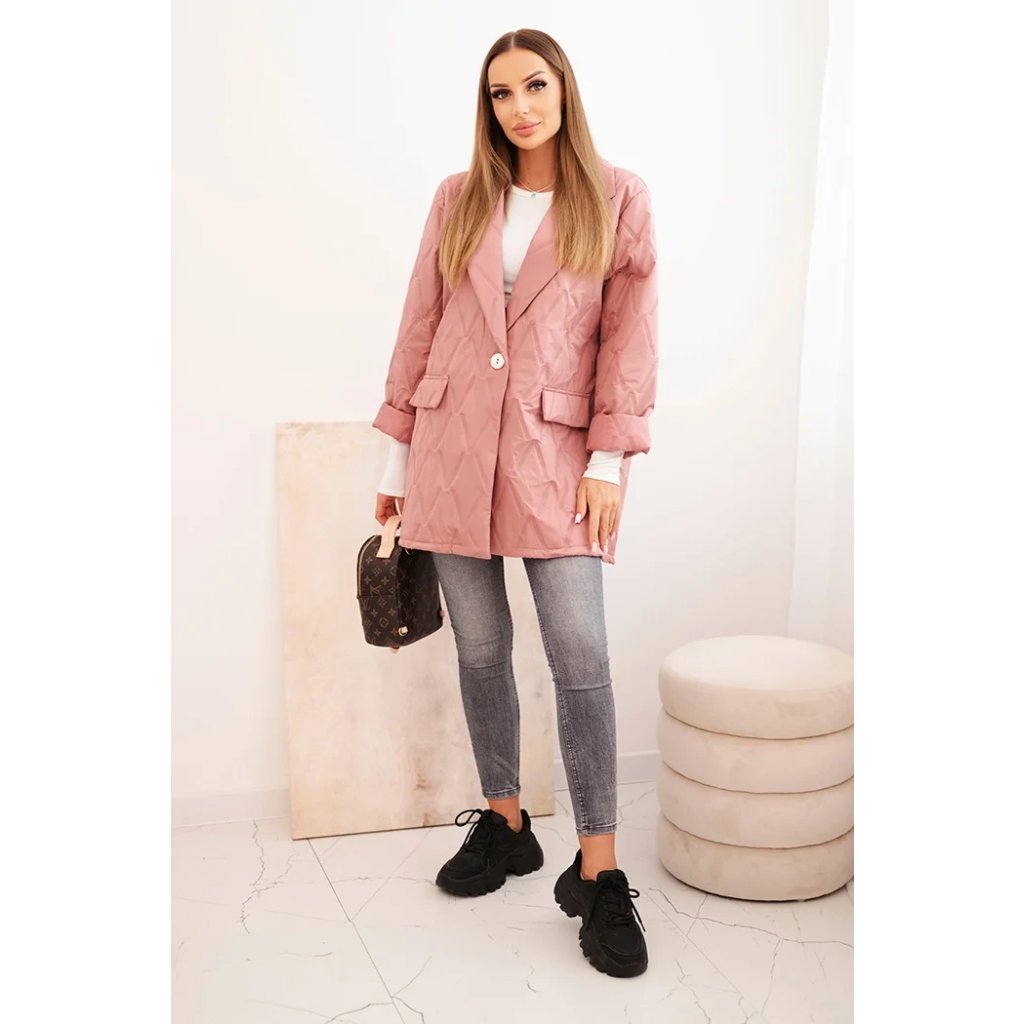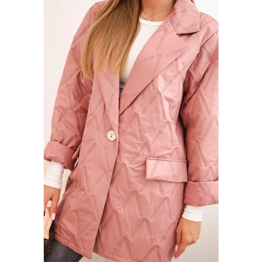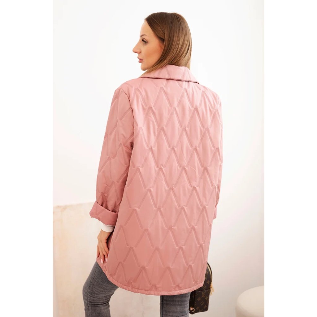 Dámska bunda Plus Size prešívaná s golierom a gombíkom tmavo ružová