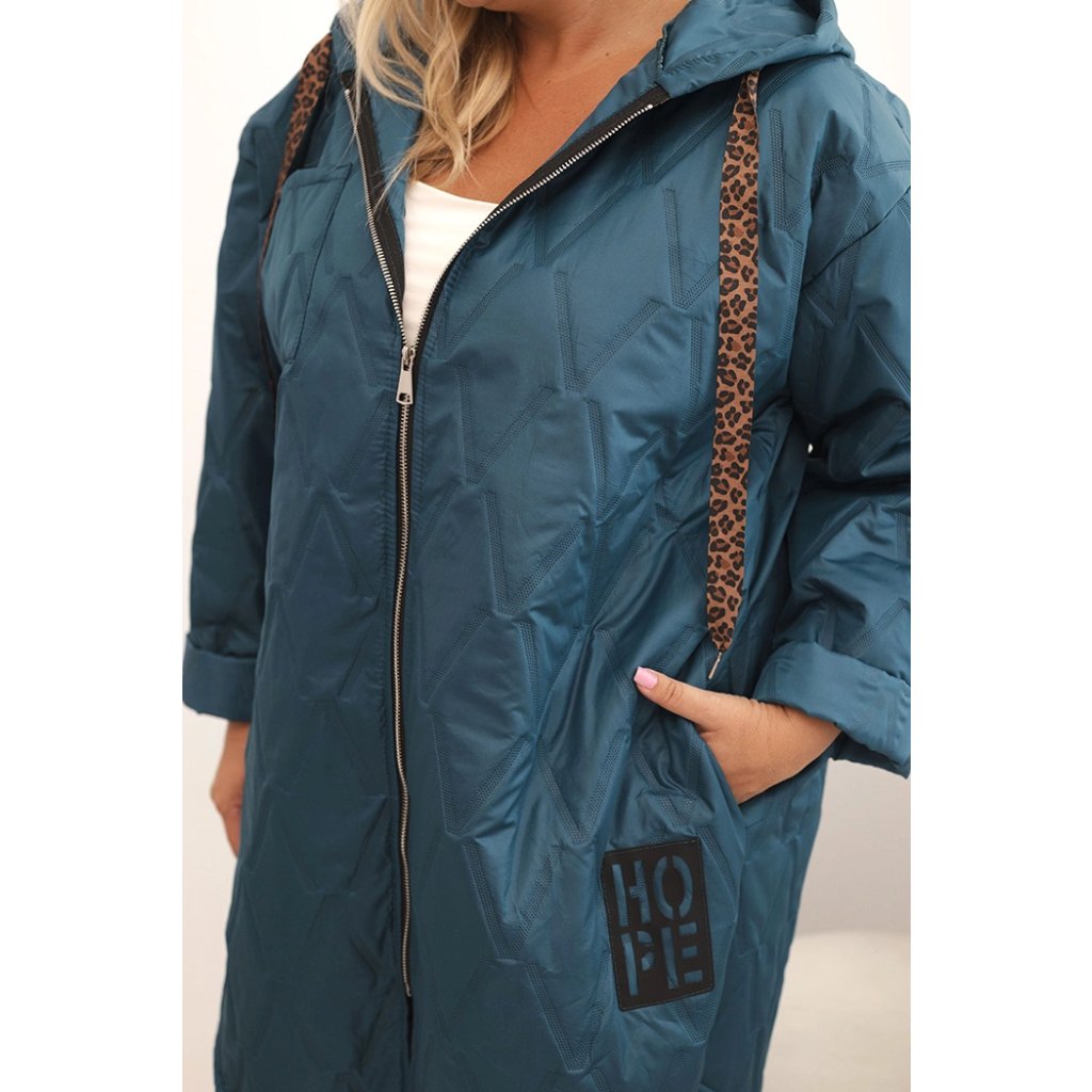 Dámska bunda 5614 Plus Size prešívaná s kapucňou a nápisom HOPE