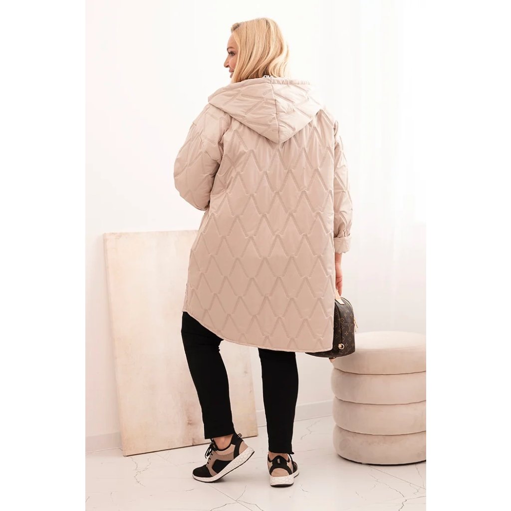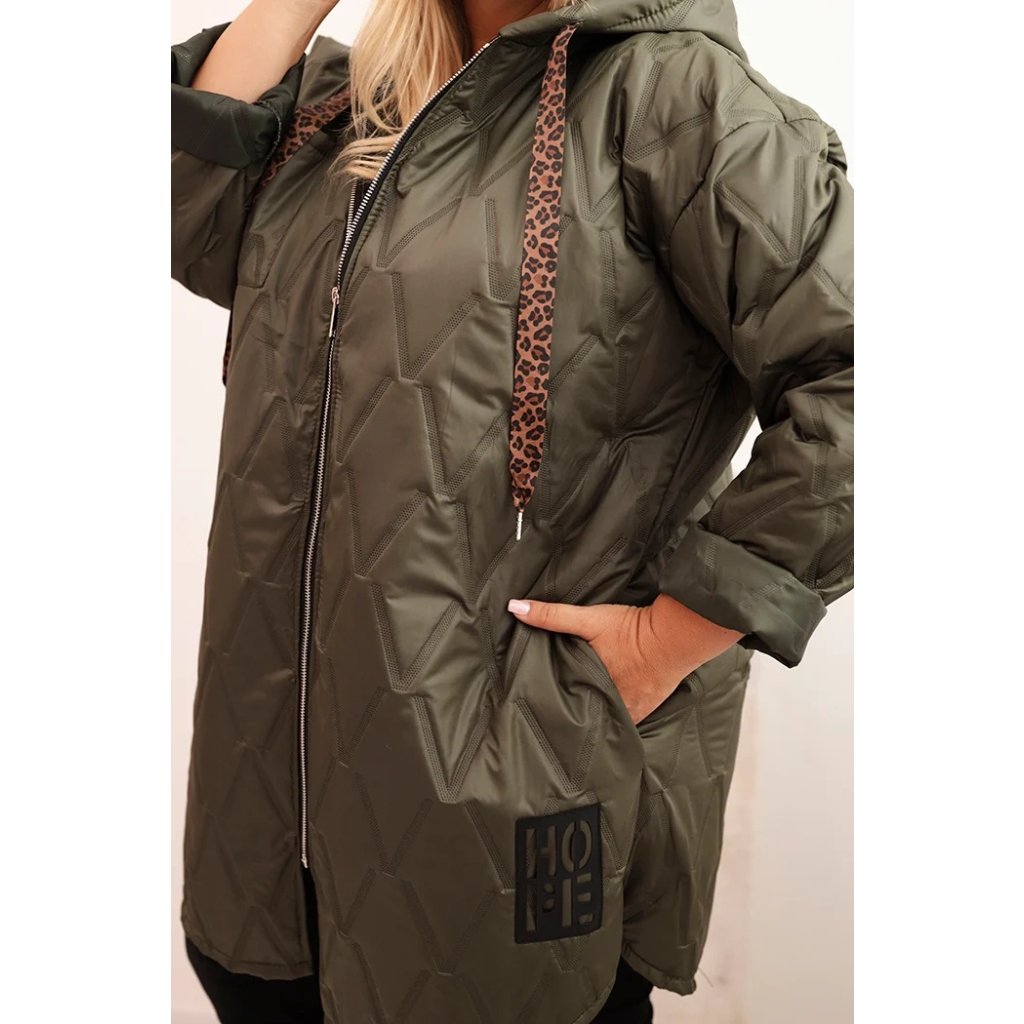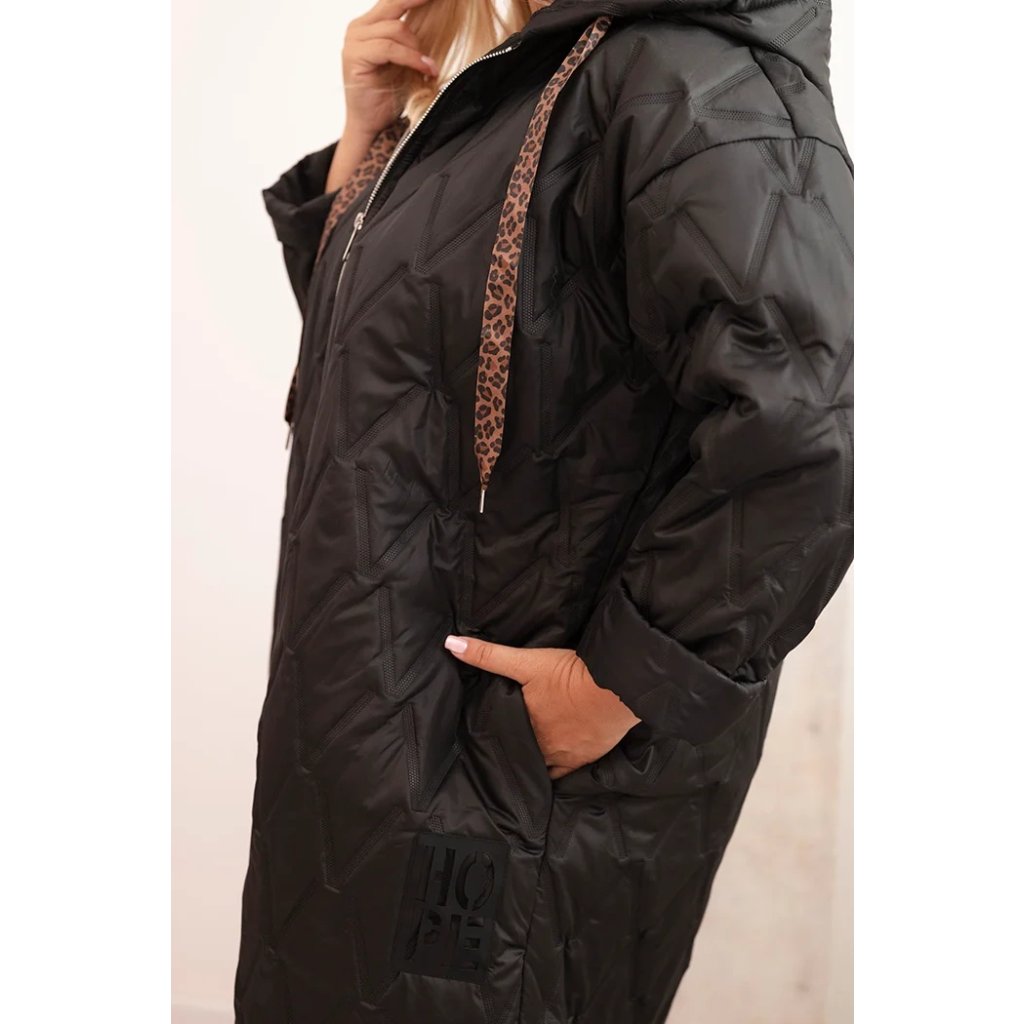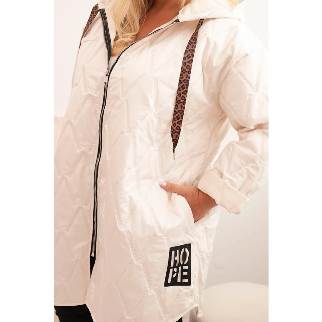 Dámska bunda 5614 Plus Size prešívaná s kapucňou a nápisom HOPE
