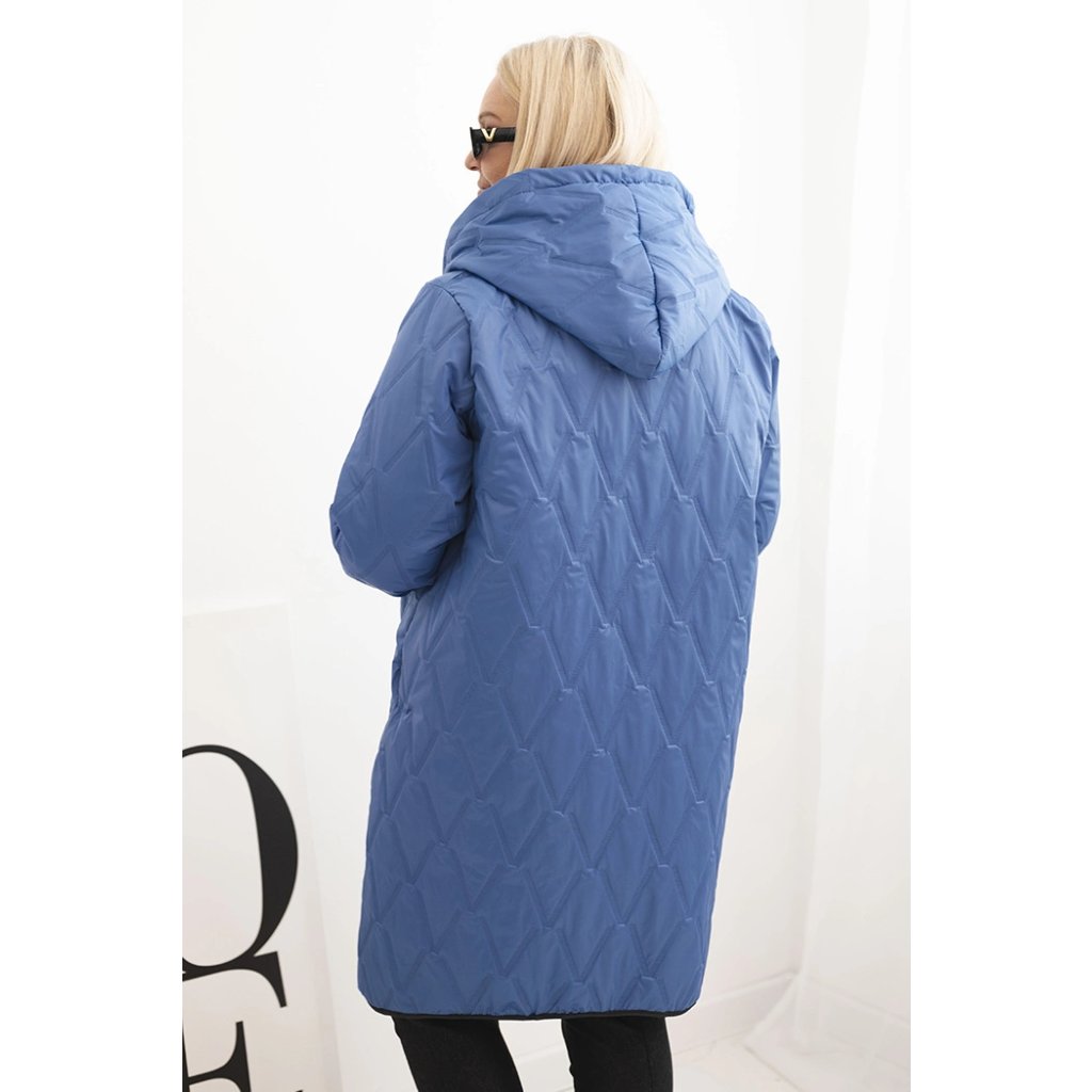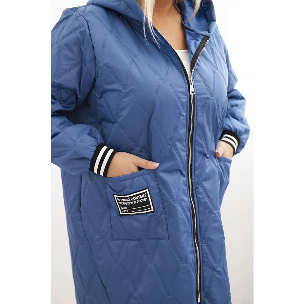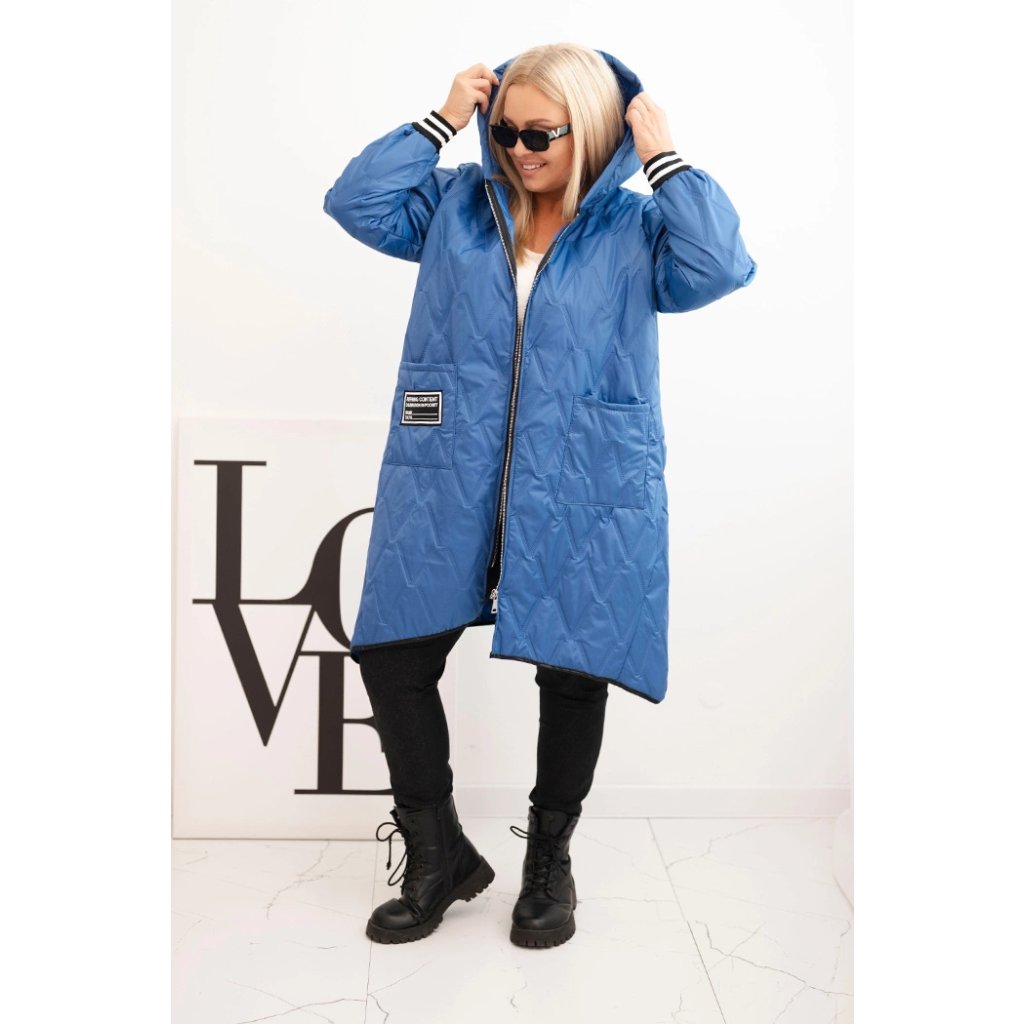 Dámska bunda Plus Size prešívaná s kapucňou a športovými manžetami svetlá jeansová