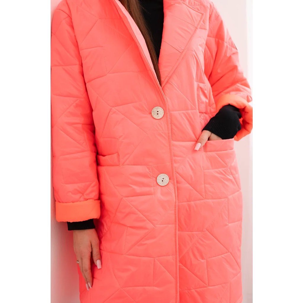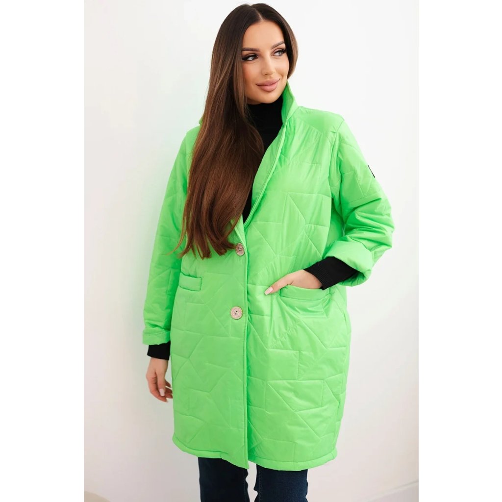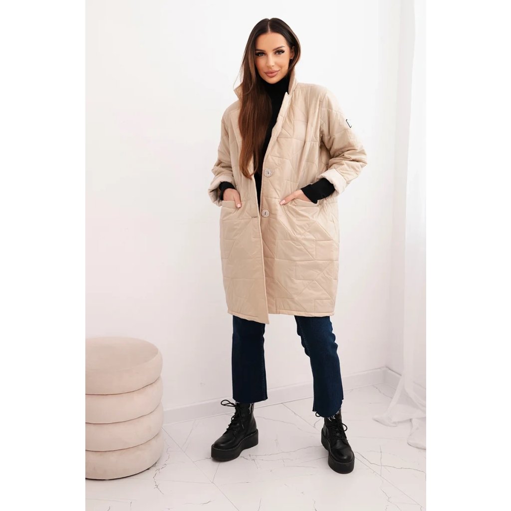 Štýlová a praktická dámska prešívaná bunda je ideálnou voľbou na chladnejšie dni. Model zapínaný na ozdobné gombíky dodáva eleganciu a klasický golier dodáva celku šik vzhľad. Prešívaná štruktúra zaisťuje nielen módny dizajn, ale aj tepelný komfort. Bunda má dve praktické vrecká vpredu a dĺžku zakrývajúcu boky, čo sa skvele hodí ako na každodenné štylizácie, tak na formálnejšie príležitosti.