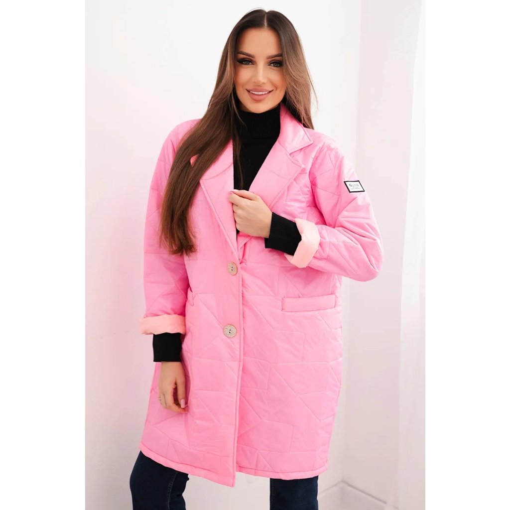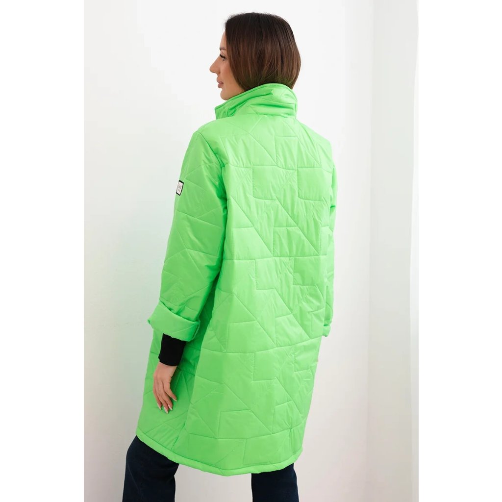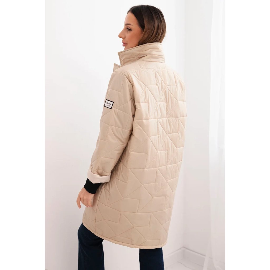 Detaily: prešívaná štruktúra, klasický golier, rukávy 3/4 s možnosťou ohrnutia