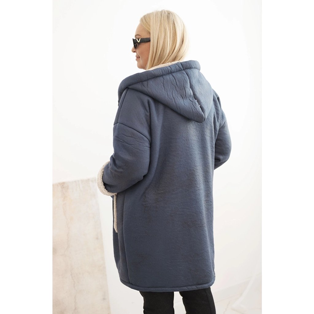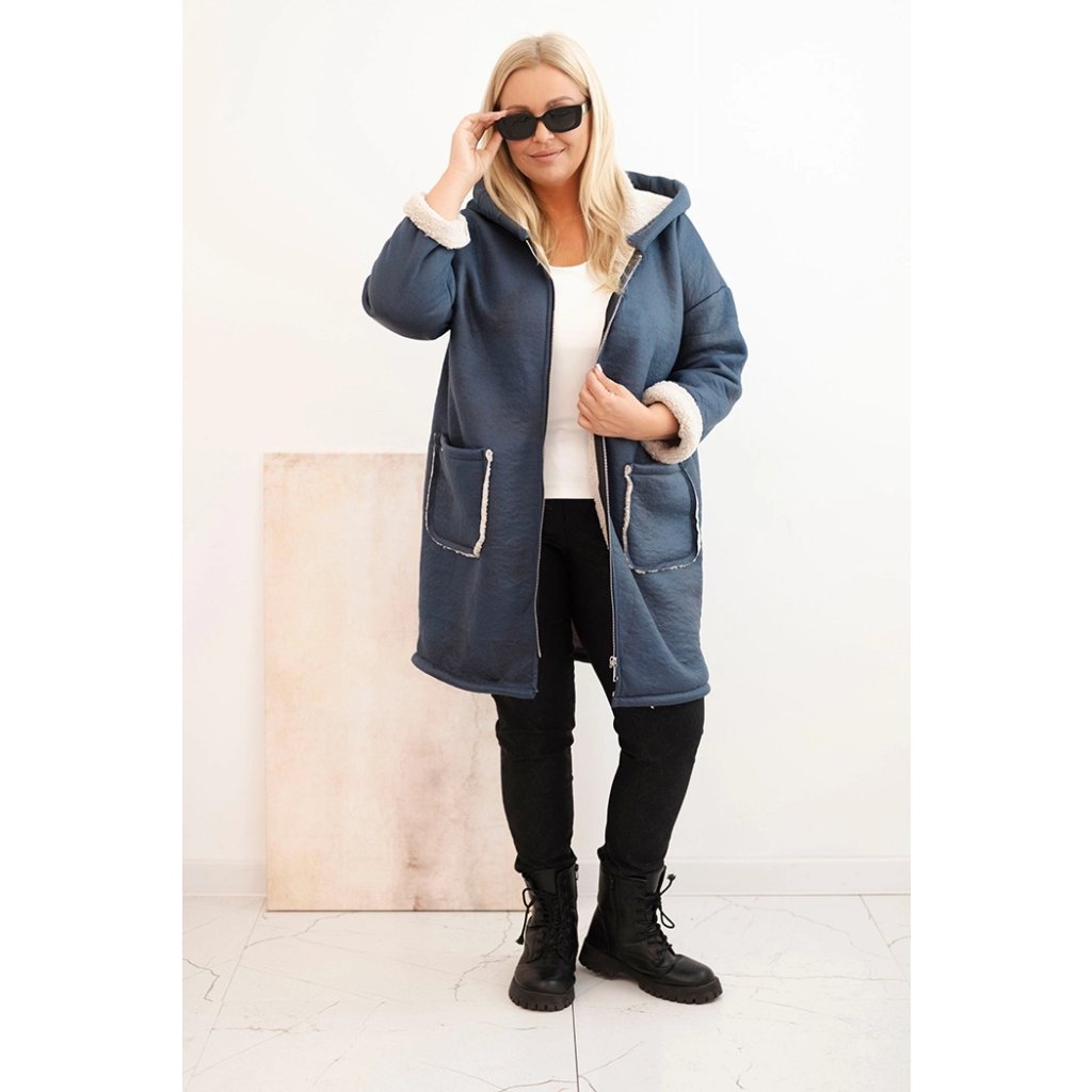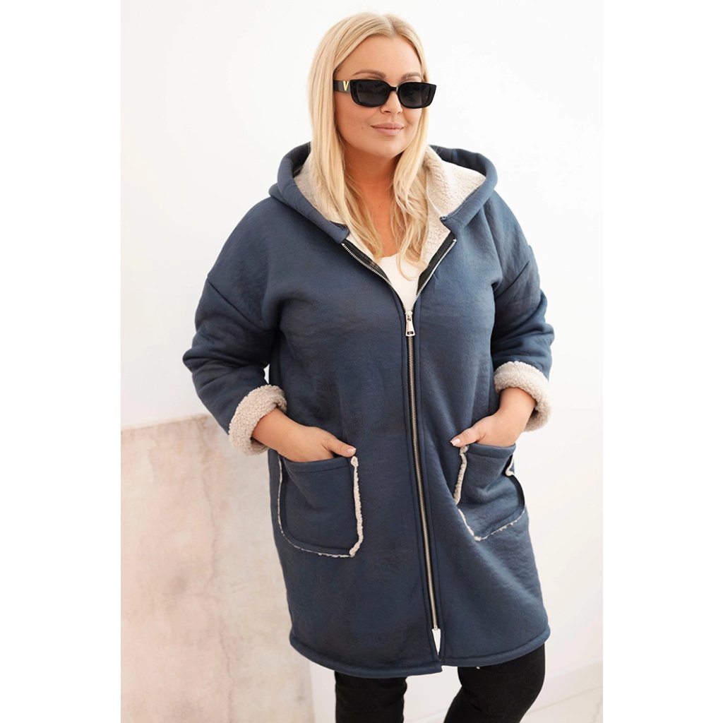 Štýlová dámska bunda plus size s kapucňou je ideálnou ponukou na chladnejšie dni. Vnútro je vyrobené z mäkkého baránka, ktorý zaisťuje teplo a útulnosť, a voľný strih umožňuje cítiť sa pohodlne po celý deň. Dlhší strih dokonale chráni pred zimou a efektné našité vrecká s ozdobným lemom jej dodávajú charakter.