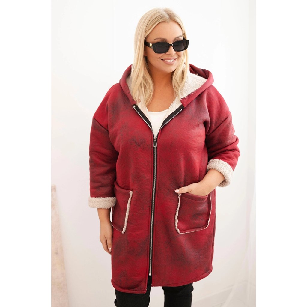 Dámska bunda Plus Size s kapucňou a vreckami zateplená baránkom