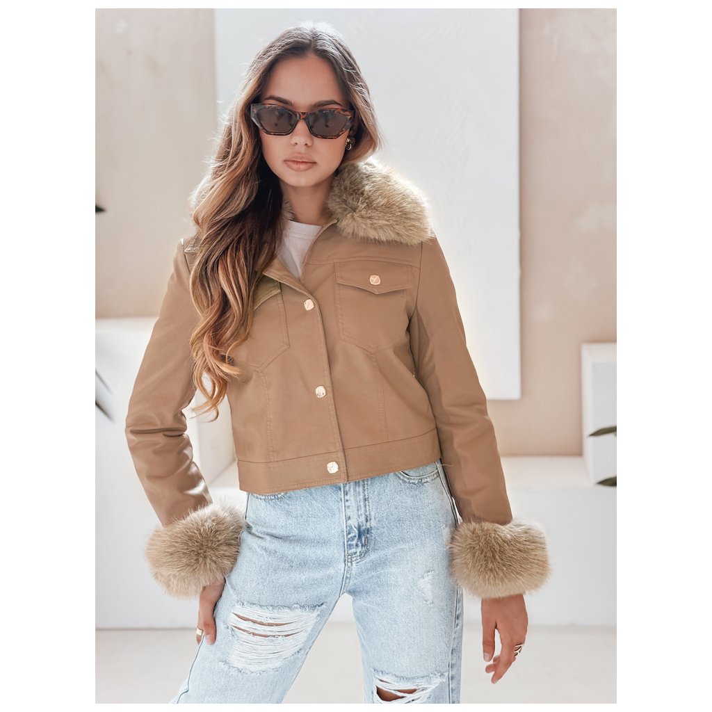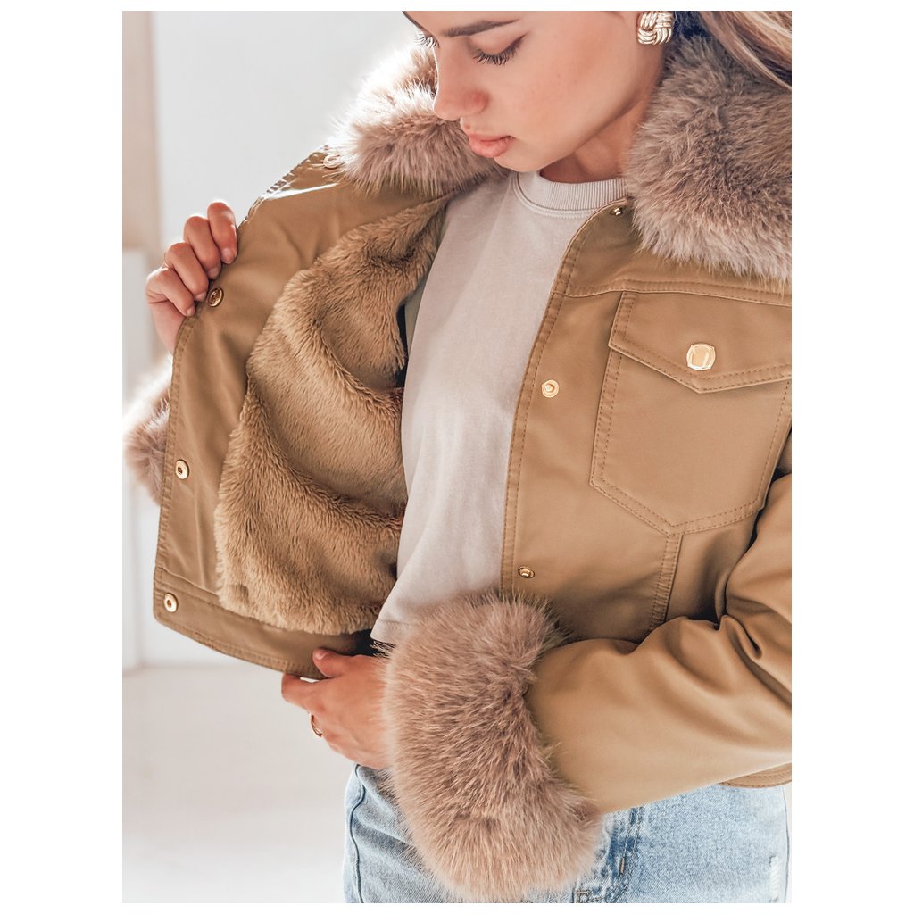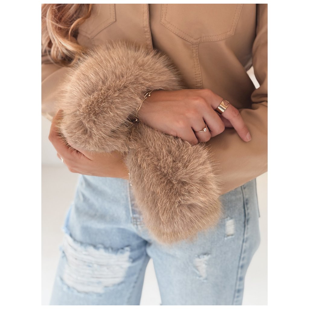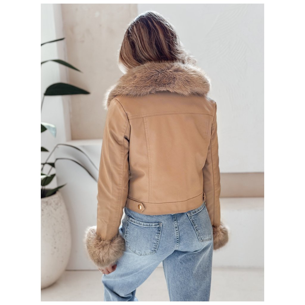 Dámska kožená bunda s kožušinou, ťavia TY5139