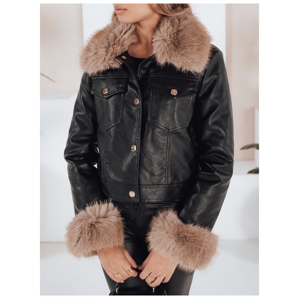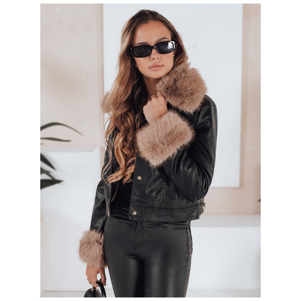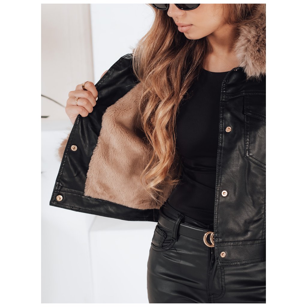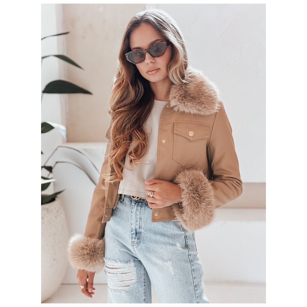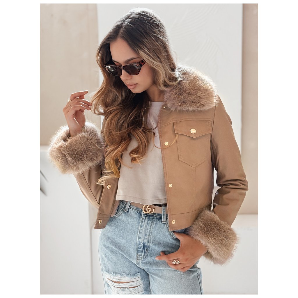 Dámska kožená bunda s kožušinou, ťavia TY5139