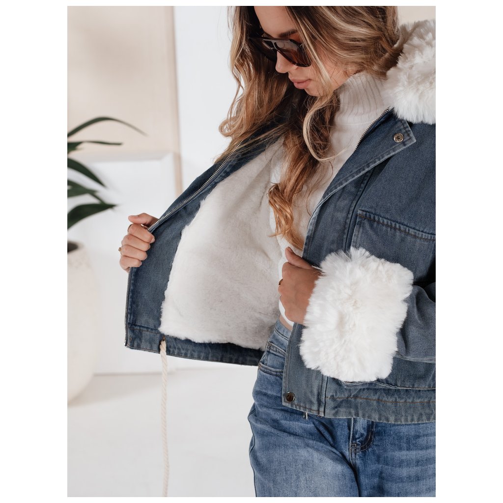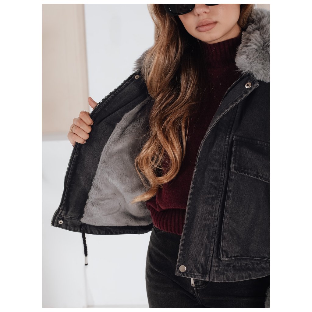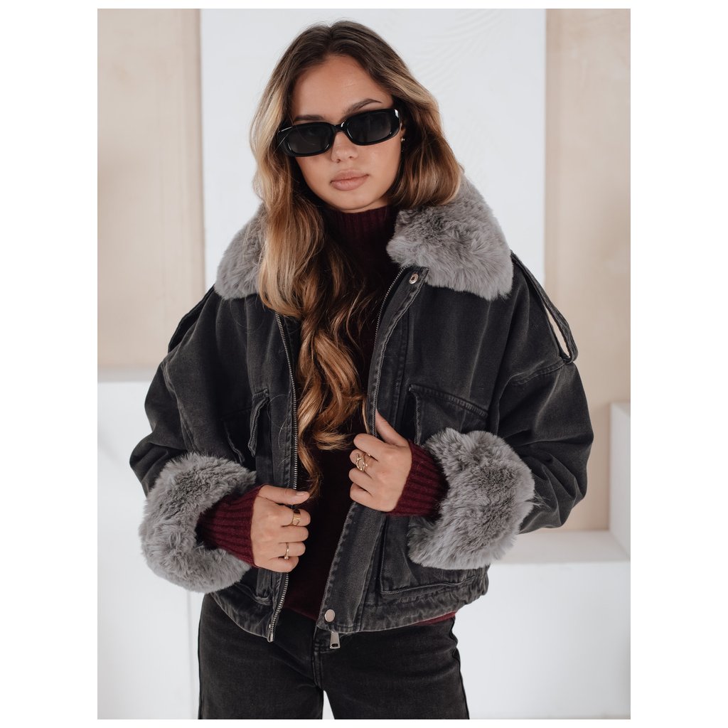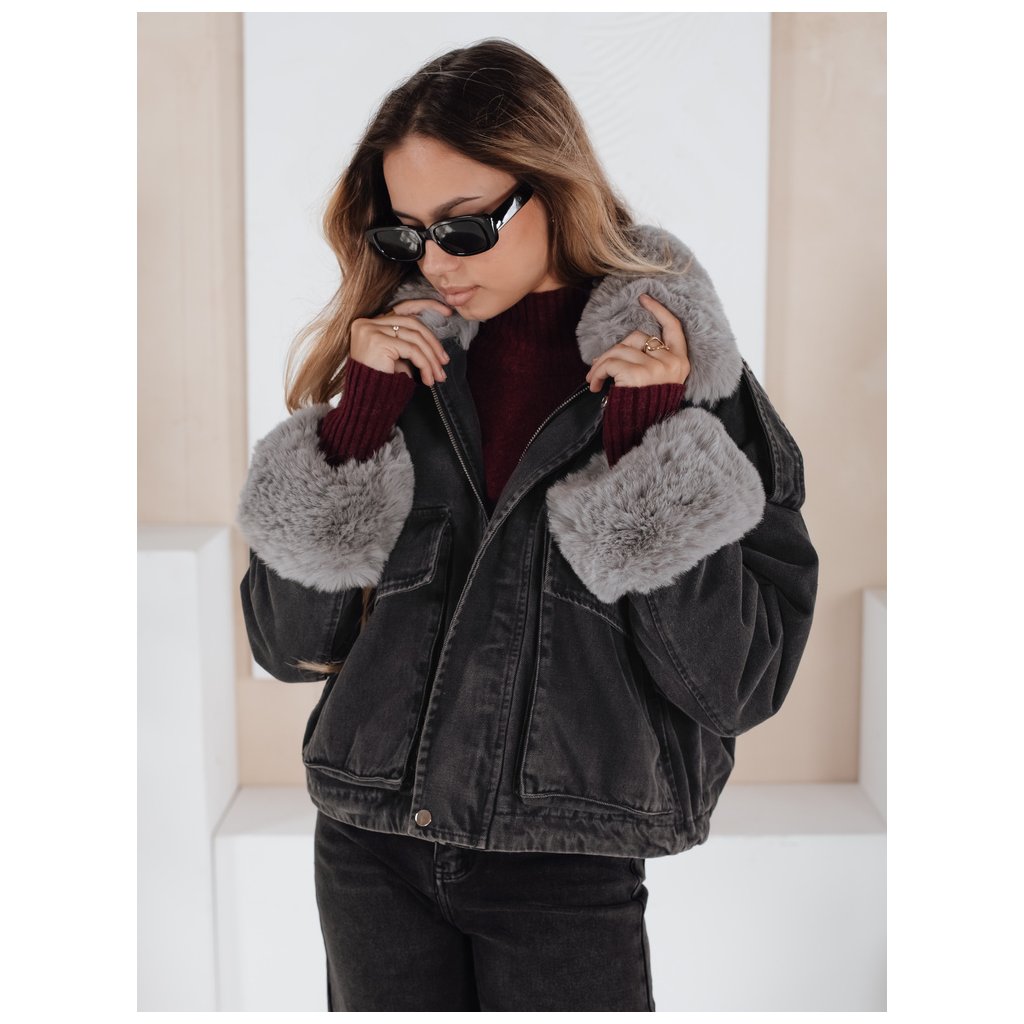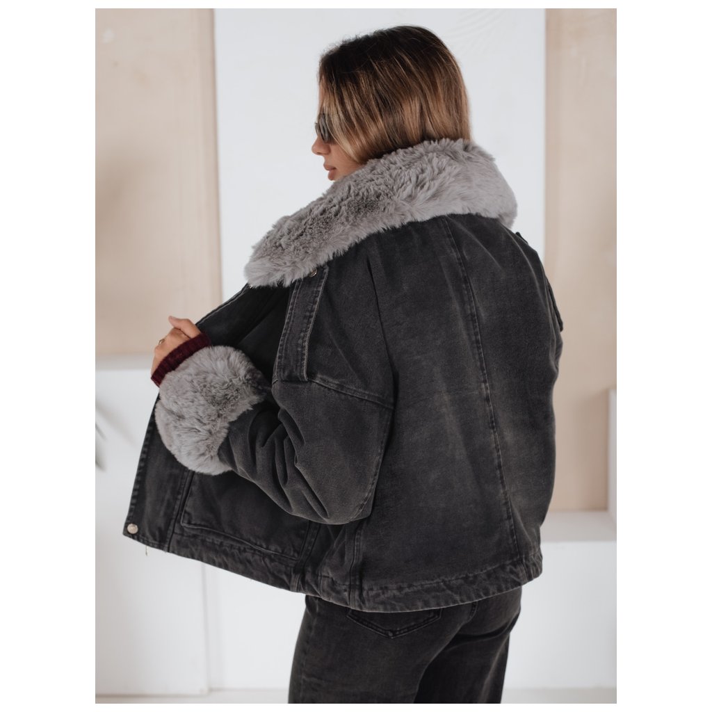 Zimná džínsová bunda s umelou kožušinou, tmavošedá Dstreet TY5154
