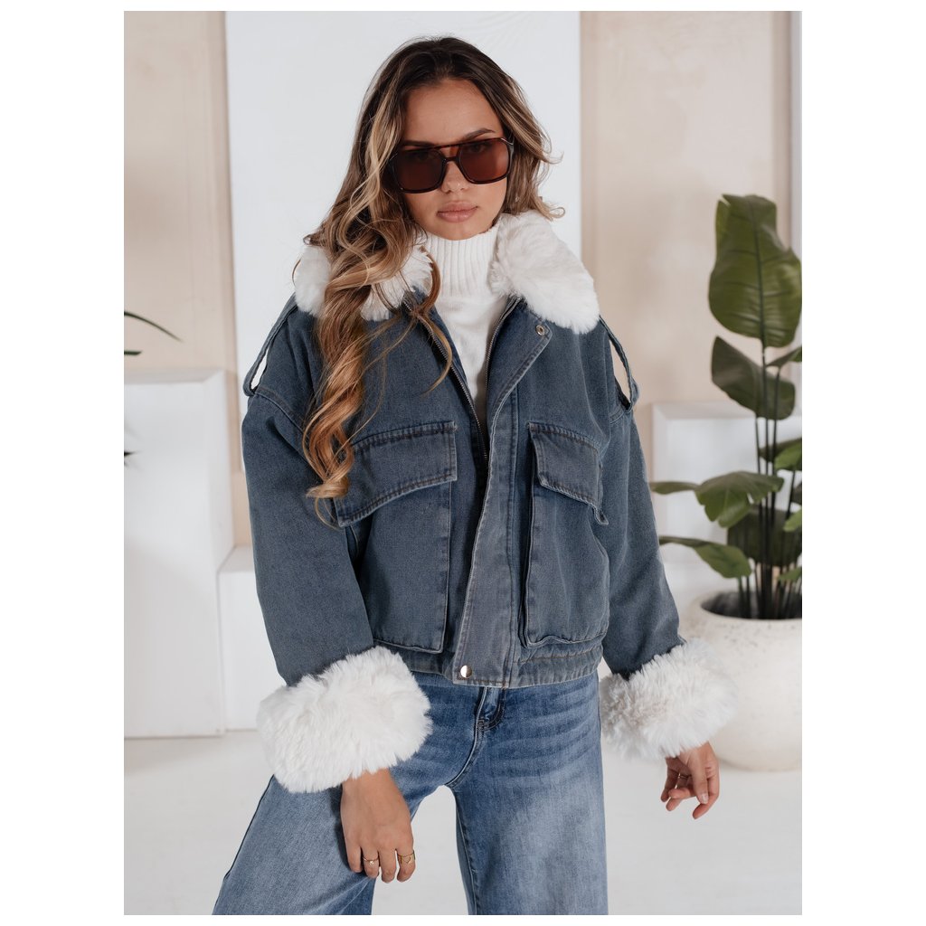 Táto tmavošedá džínsová bunda pre ženy je voľbou do chladného počasia, ktorá kombinuje módny štýl s vysokým pohodlím. Voľný strih a kratšia dĺžka vytvárajú ležérny vzhľad, zatiaľ čo mäkký kožušinový lem vnútri poskytuje teplo. Odnímateľné kožušinové detaily na golieri a rukávoch vám umožňujú zmeniť vzhľad a prispôsobiť bundu rôznym príležitostiam a poveternostným podmienkam. Praktické vonkajšie vrecká zvyšujú jej funkčnosť.