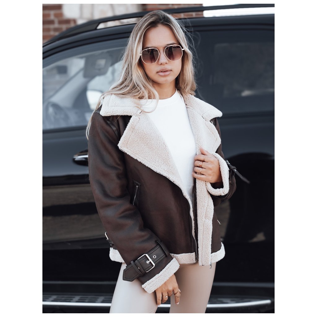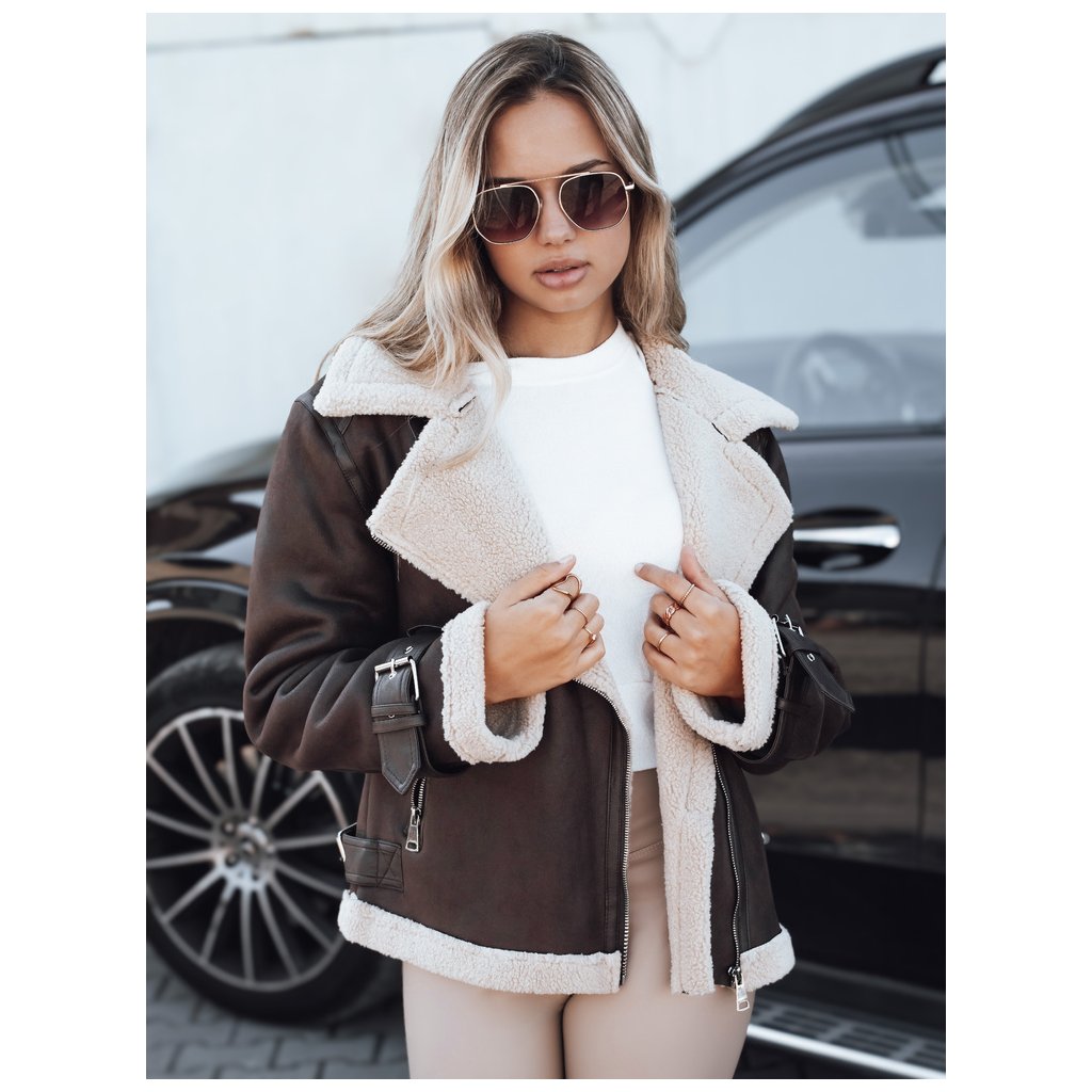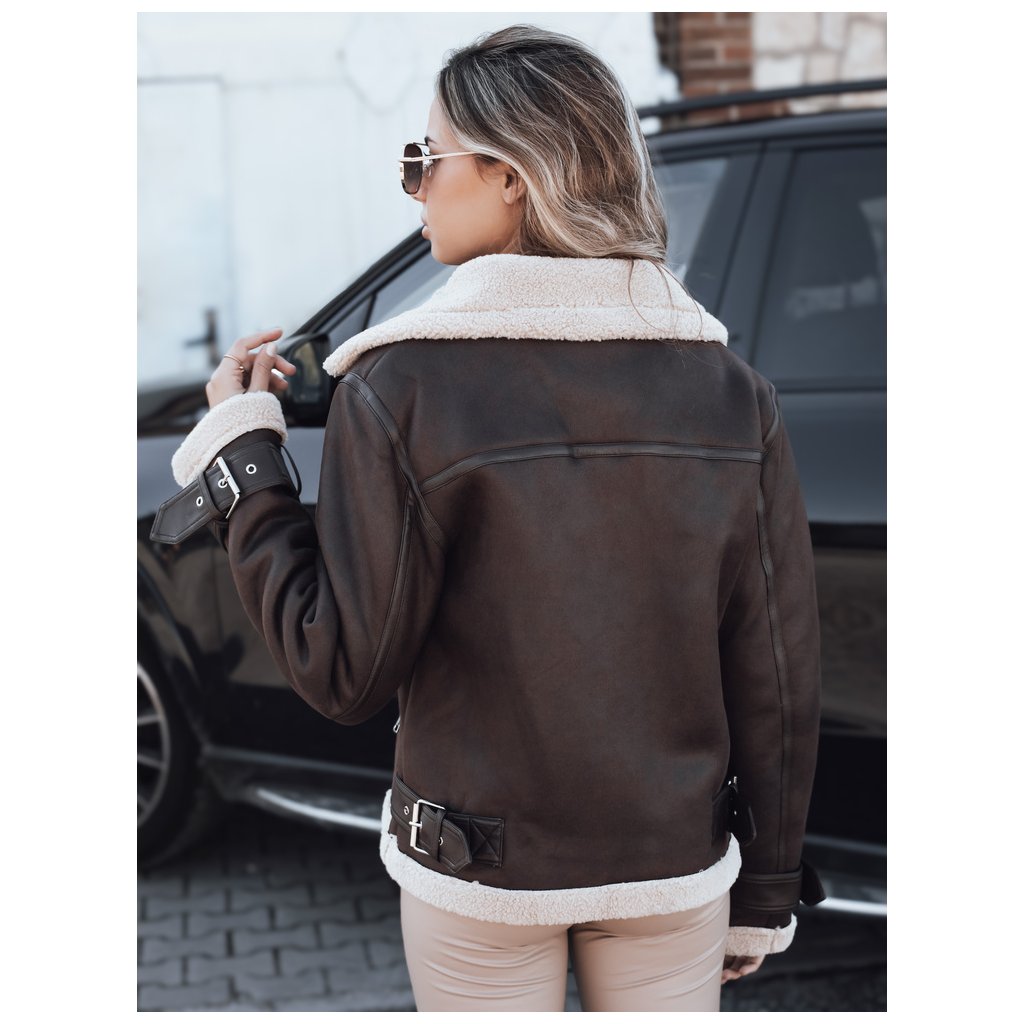 Dámska hnedá motorkárska bunda z ovčej kože TY5234