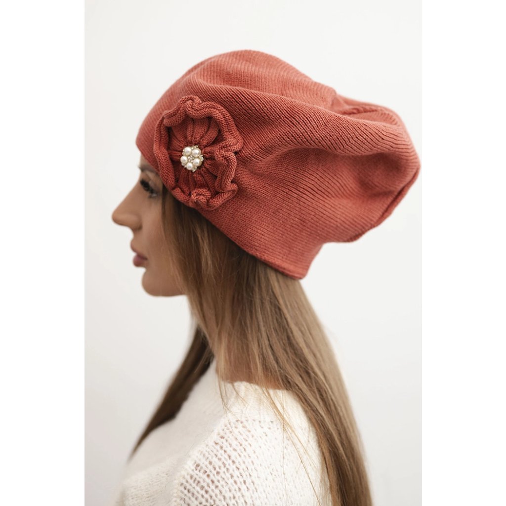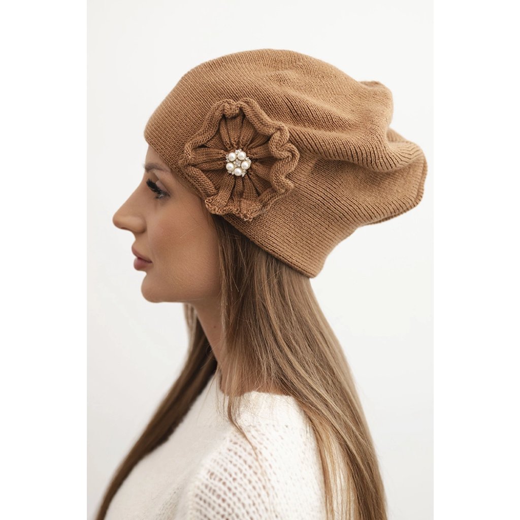 Elegantná dámska čiapka s ozdobnou kvetinou a aplikáciou z perličiek, ideálna pre ženy, ktoré ocenia štýl a pohodlie. Mäkký úplet zaisťuje komfort nosenia a účinnú ochranu pred chladom. Česká výroba zaručuje vysokú kvalitu spracovania.