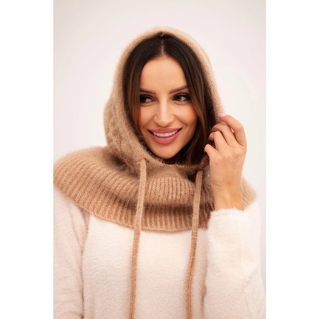 Dámska čiapka s kapucňou, šnúrkami a vrkočovým vzorom