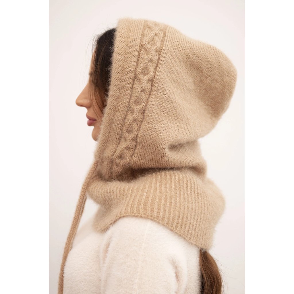 Dámska čiapka s kapucňou, viazaním a vrkôčikovým vzorom - výpredaj