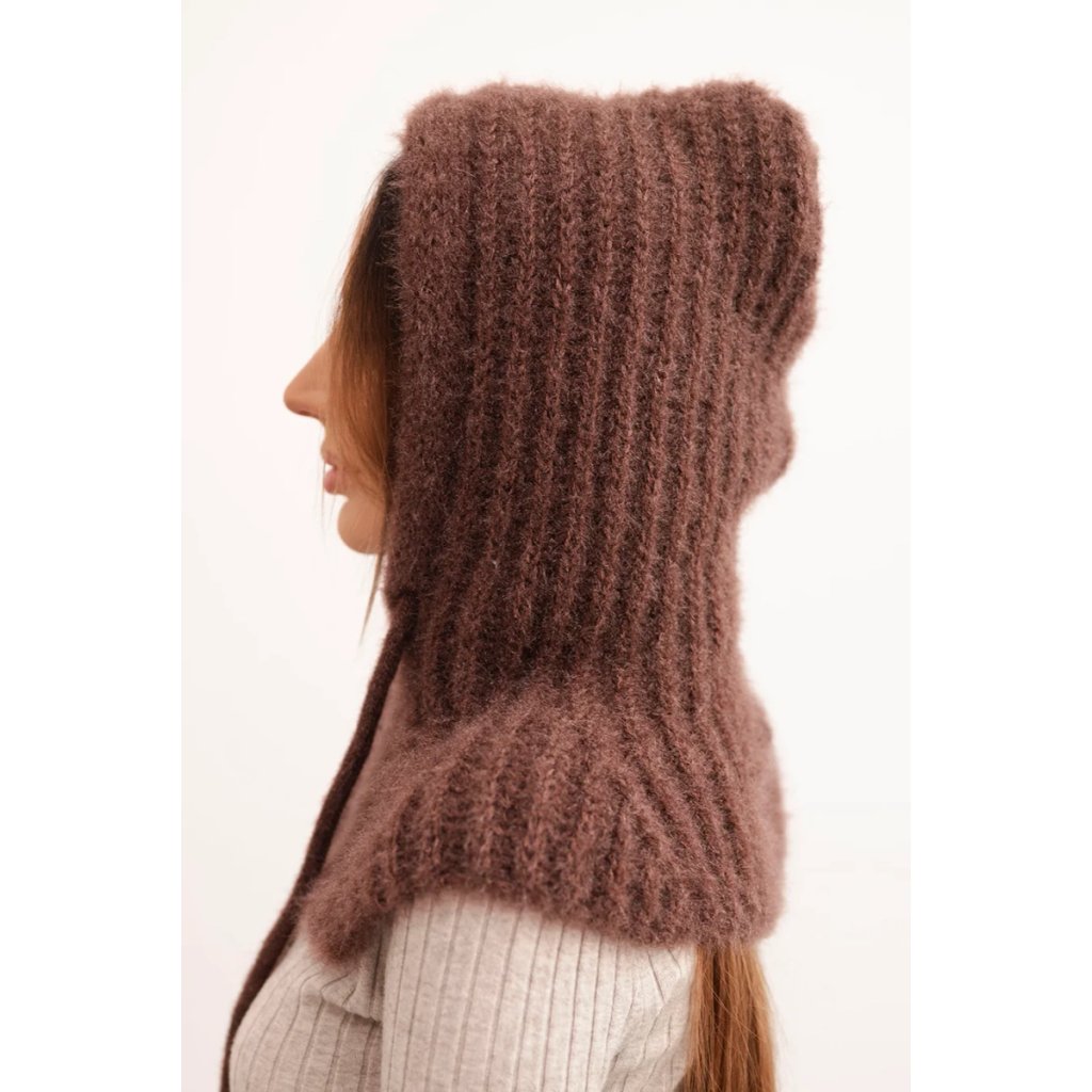 Dámska čiapka s kapucňou a jemným pletením so šnúrkami hnedá