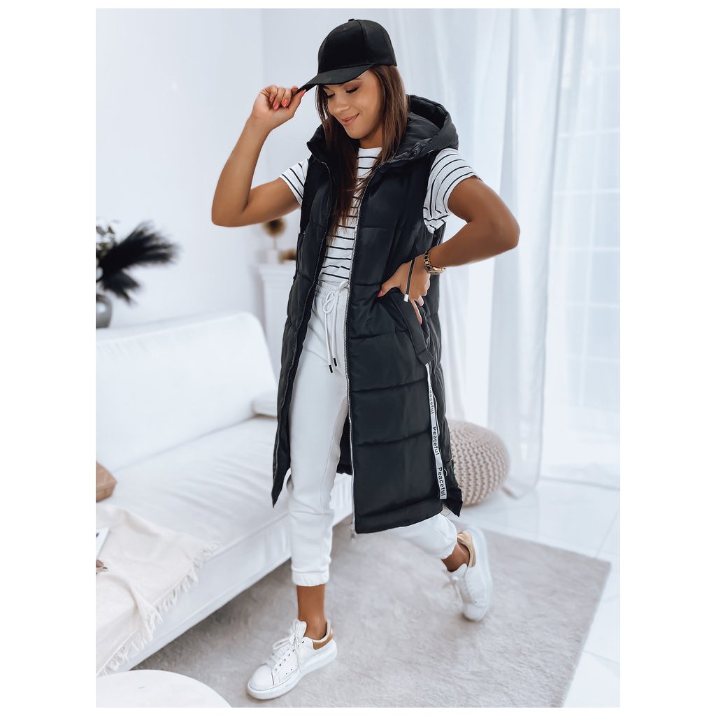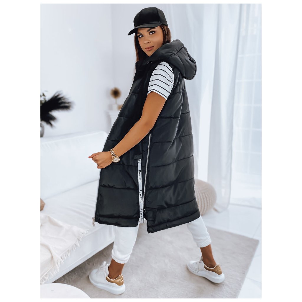 Dámska dlhá prešívaná vesta s kapucňou SKYLER čierna Dstreet TY3196
