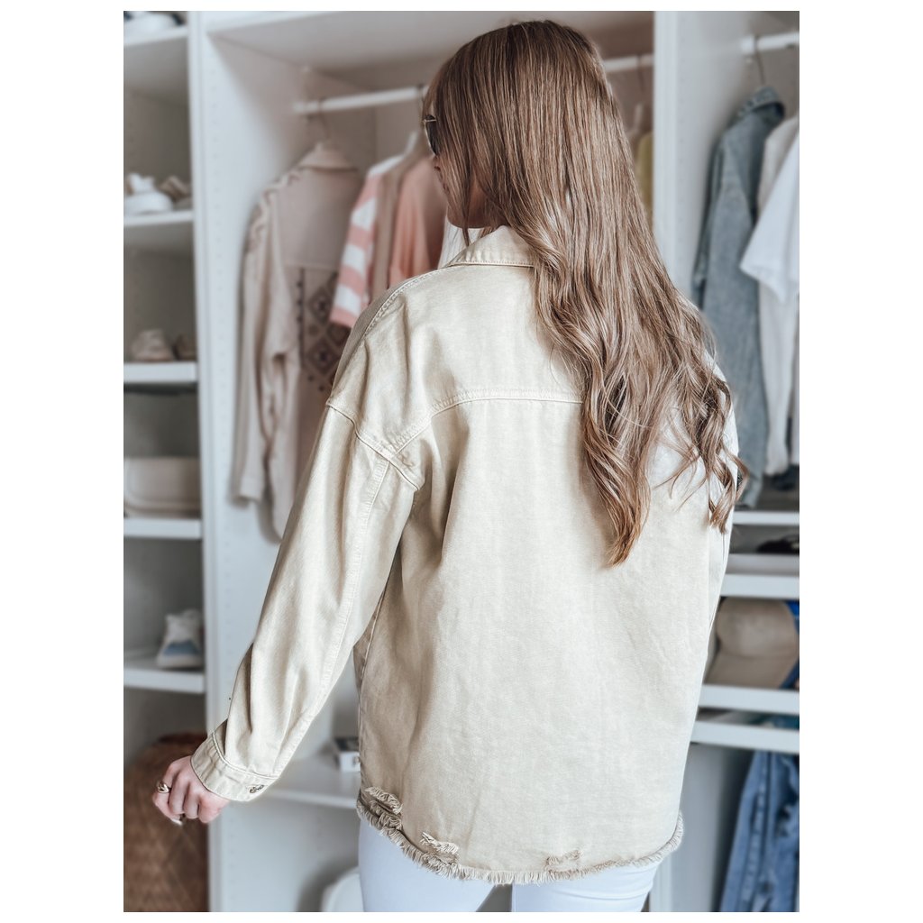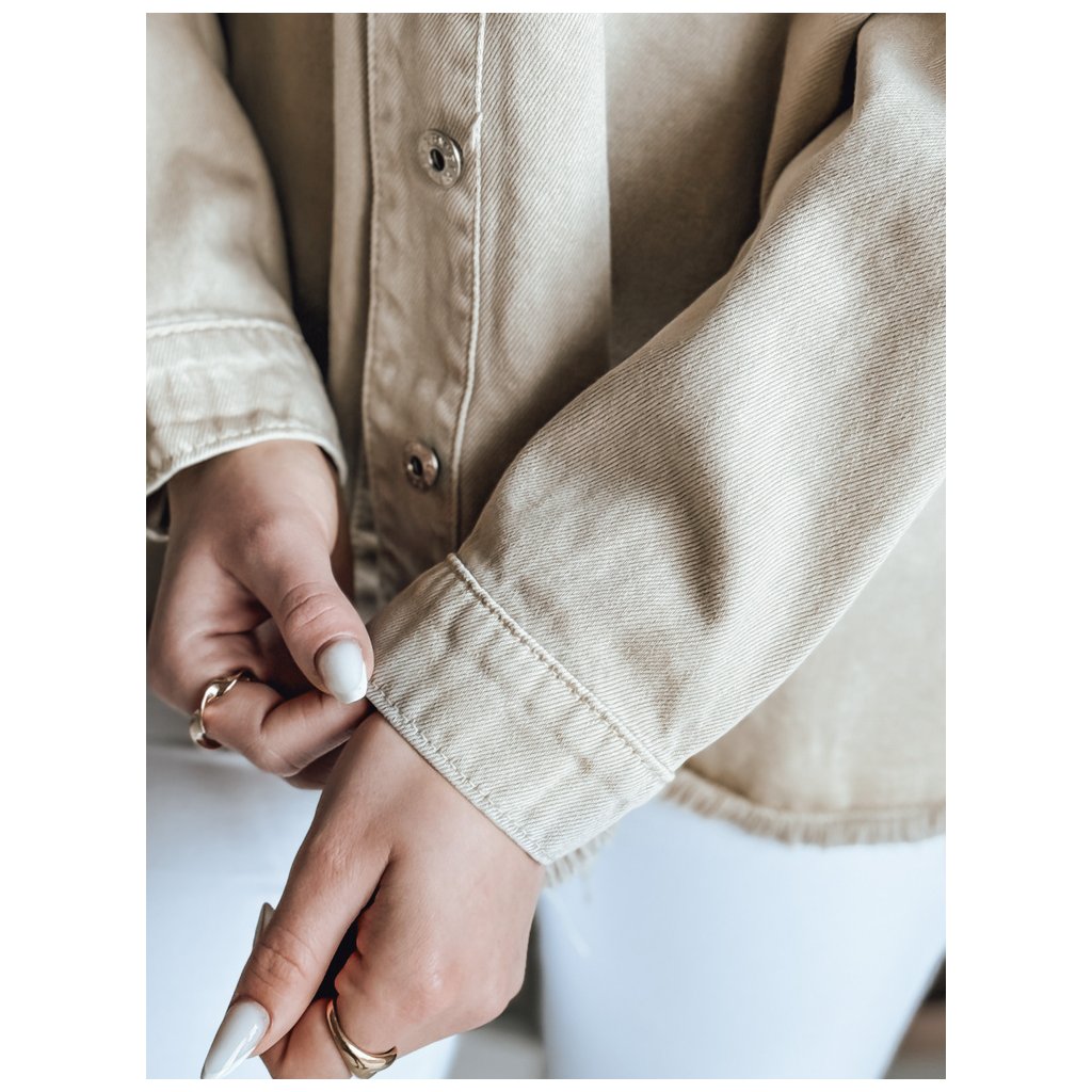 Džínsová bunda nadmernej veľkosti s vyblednutým efektom a ozdobným lemovaním. Táto bunda má náprsné vrecká na gombíky a gombíky po celej dĺžke. Ozdobné lemovanie a rozstrapkané lemovanie jej dodáva módny vzhľad. Nastaviteľné manžety umožňujú prispôsobiť rukávy vášmu štýlu. Ideálna na bežné nosenie v prechodnom období.