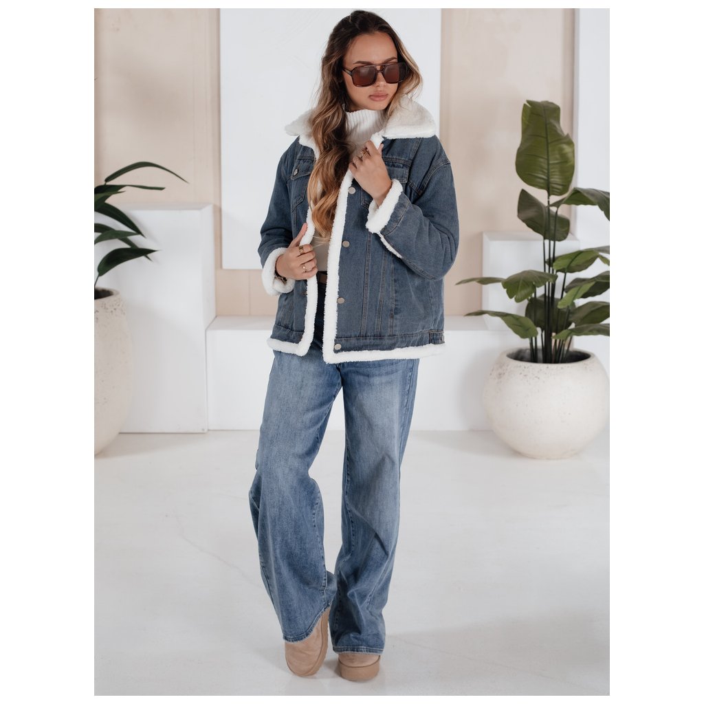 Táto dámska džínsová bunda je klasika s moderným nádychom, ideálna na chladnejšie dni. Vďaka mäkkej kožušinovej izolácii kombinuje pohodlie s funkčnosťou. Rovný, mierne po boky dlhý, oversized strih umožňuje voľnosť pohybu, zatiaľ čo zateplený golier a lemy dodávajú módny nádych.