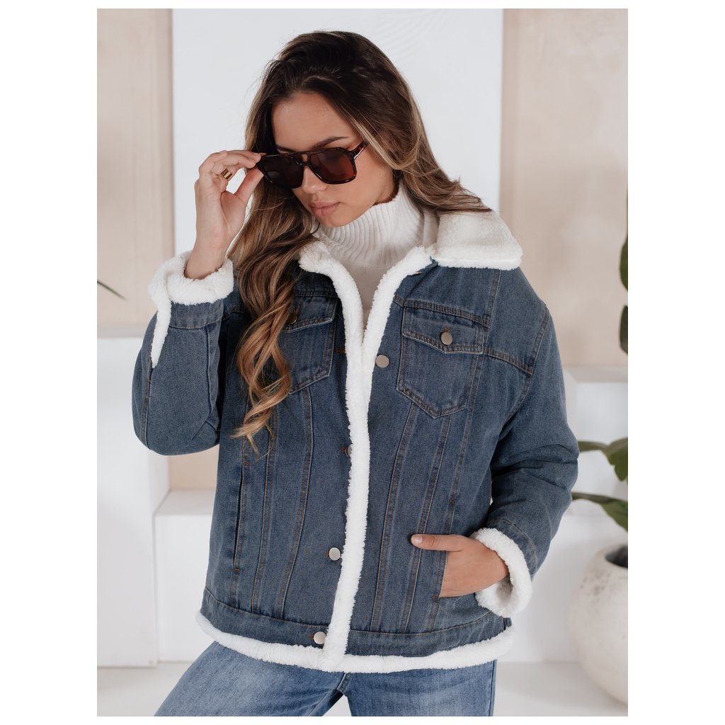Dámska zimná džínsová bunda s ovčou kožou, modrá, Dstreet TY5172