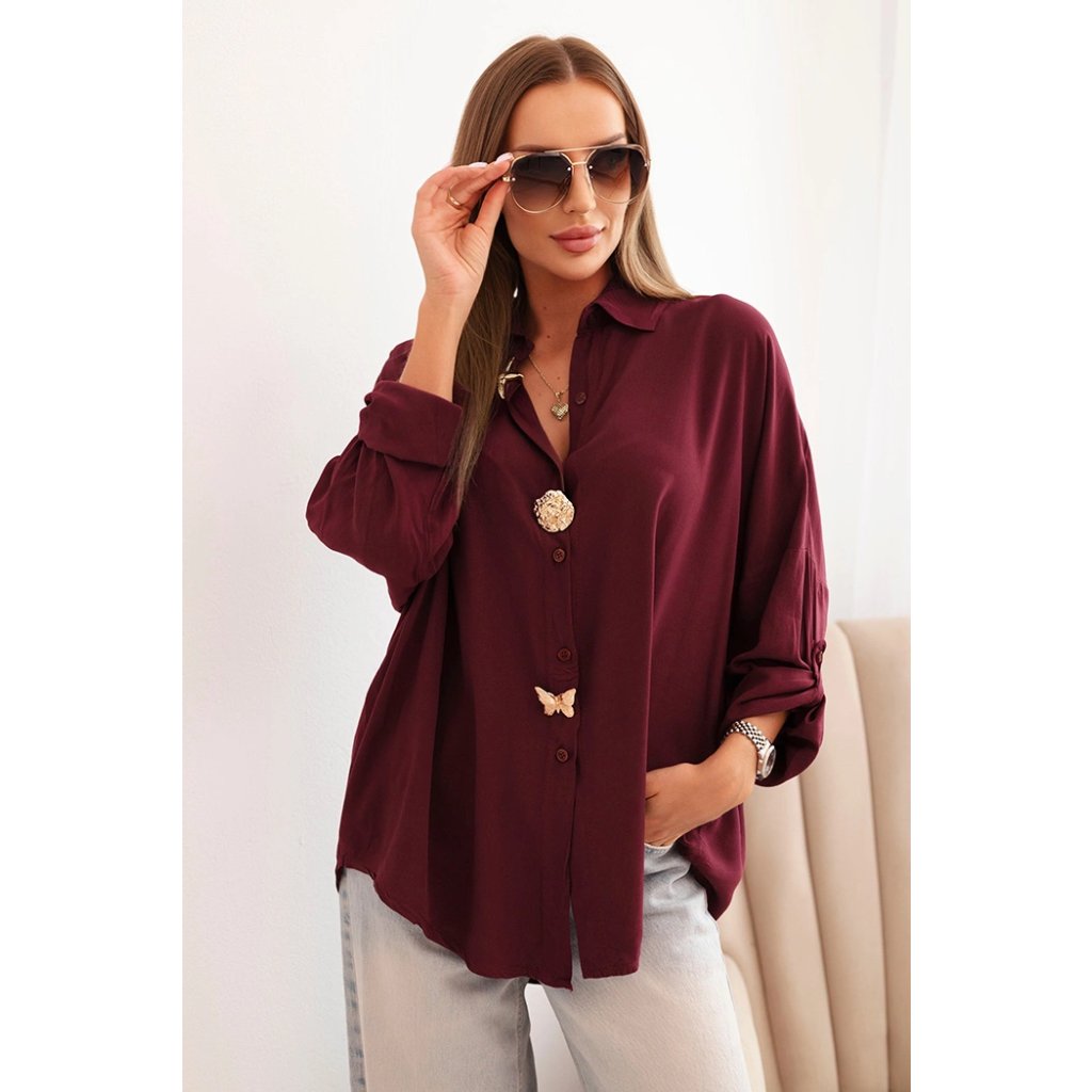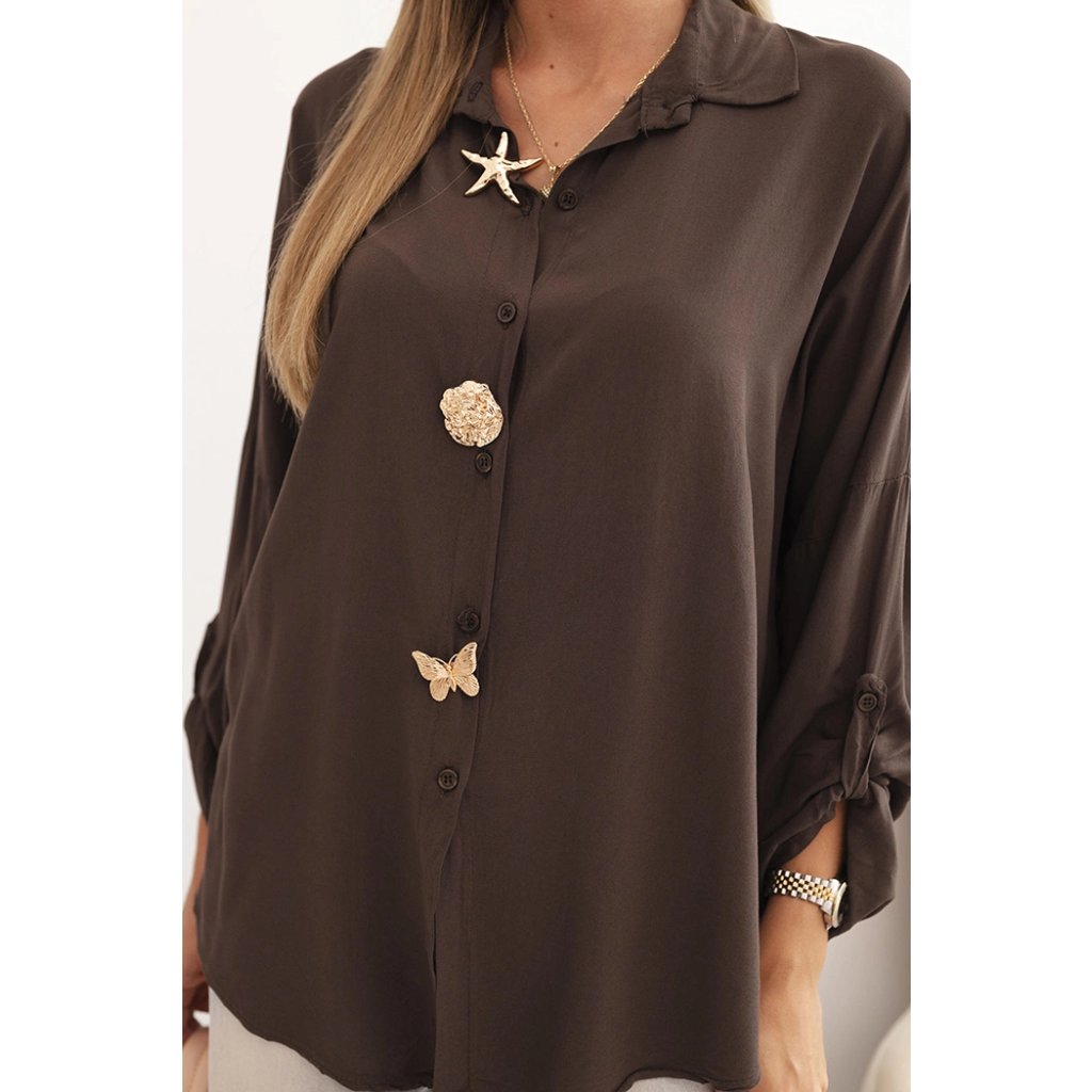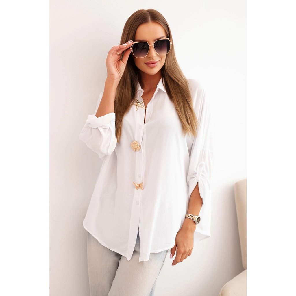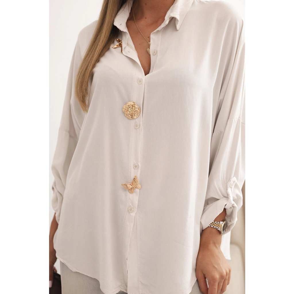 Dámska košeľa ART61953 s viskózou a ozdobnými gombíkmi