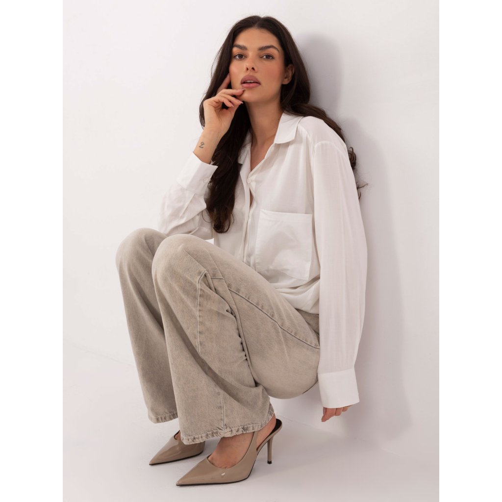 Biela viskózová košeľa na gombíky.Prevažujúci vzor: jednofarebný