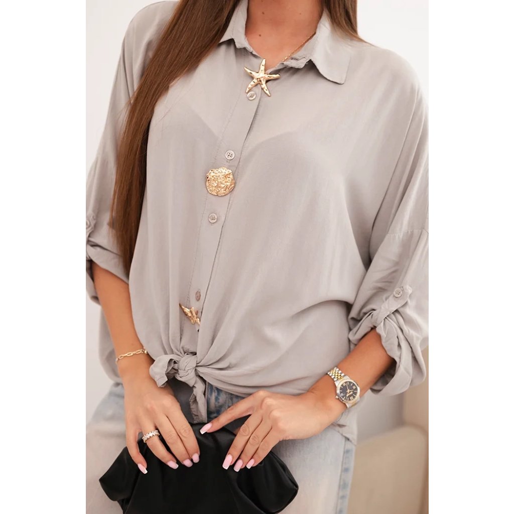 Dámska košeľa ART61953 s viskózou a ozdobnými gombíkmi a golierom
